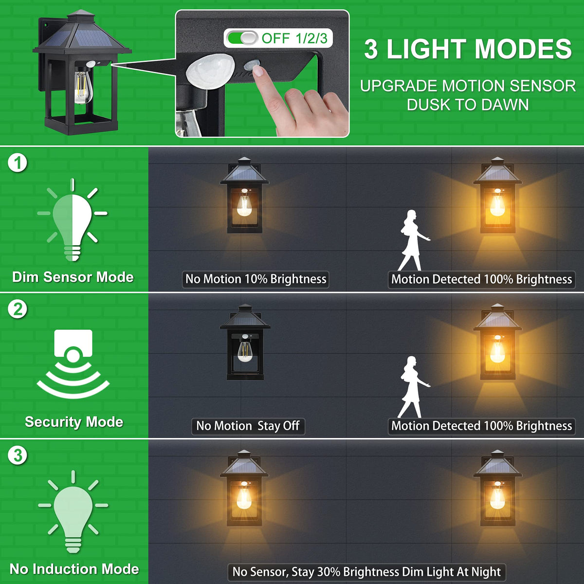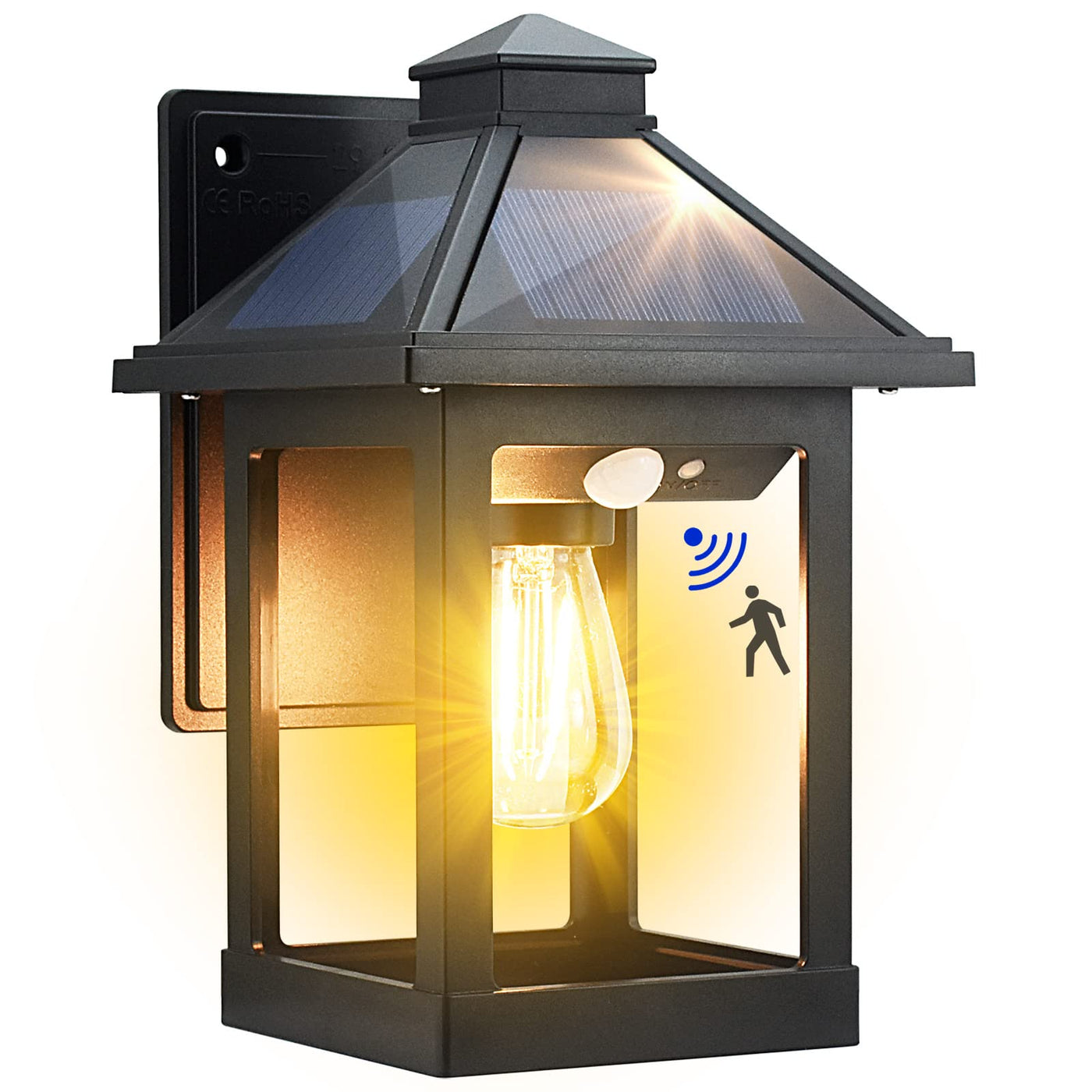 Kuniwa Solar Wall Light With Motion Sensor, 3 Modes, Waterproof Outdoor Sconce For Porch & Patio