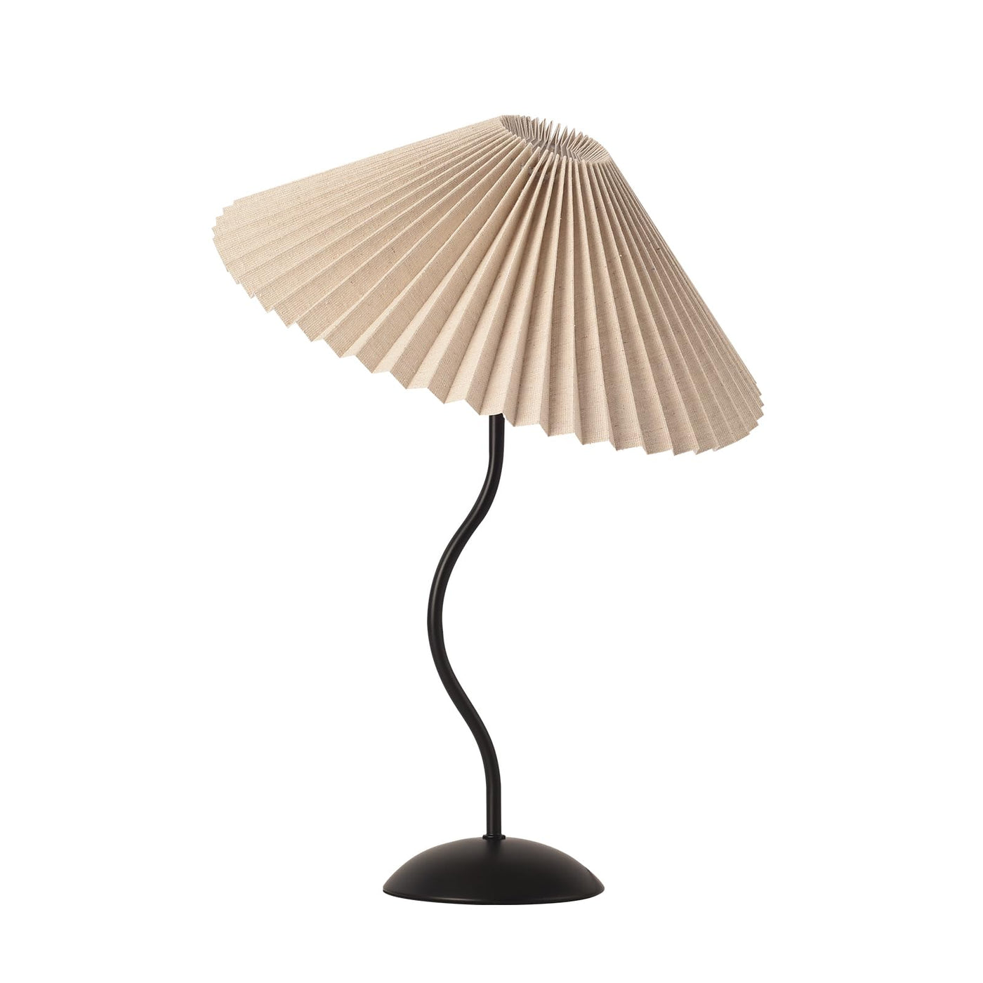 Kunjoulam Small Pleated Table Lamp, Bedside Nightstand Lamp With Beige Lampshade Black Base, Morden Mini Lamp For Bedroom Home O