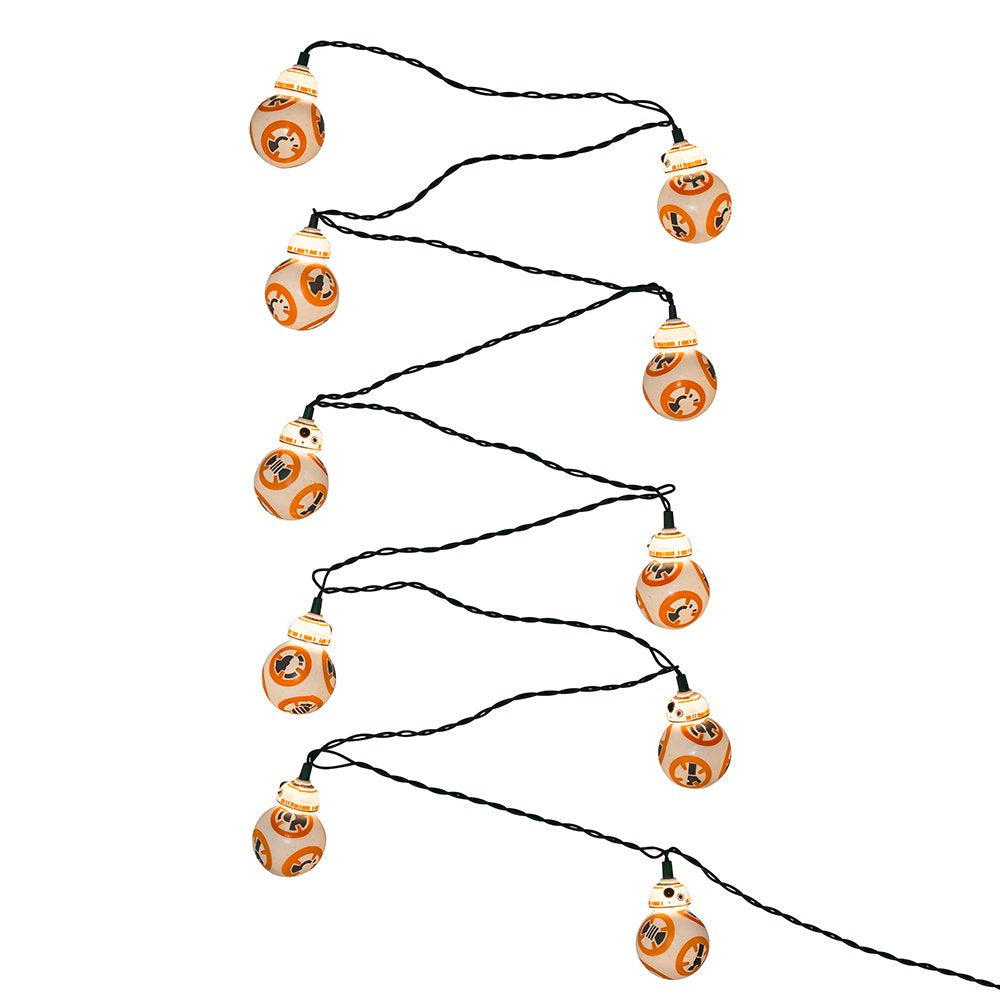 Sure to be a hit with any fan of the star Wars series, this light set from Kurt Adler features the lovable new droid BB8 in his orange and white round form. Each set has a 24 inch lead wire and 8 inch light spacing. For both indoor and outdoor use.