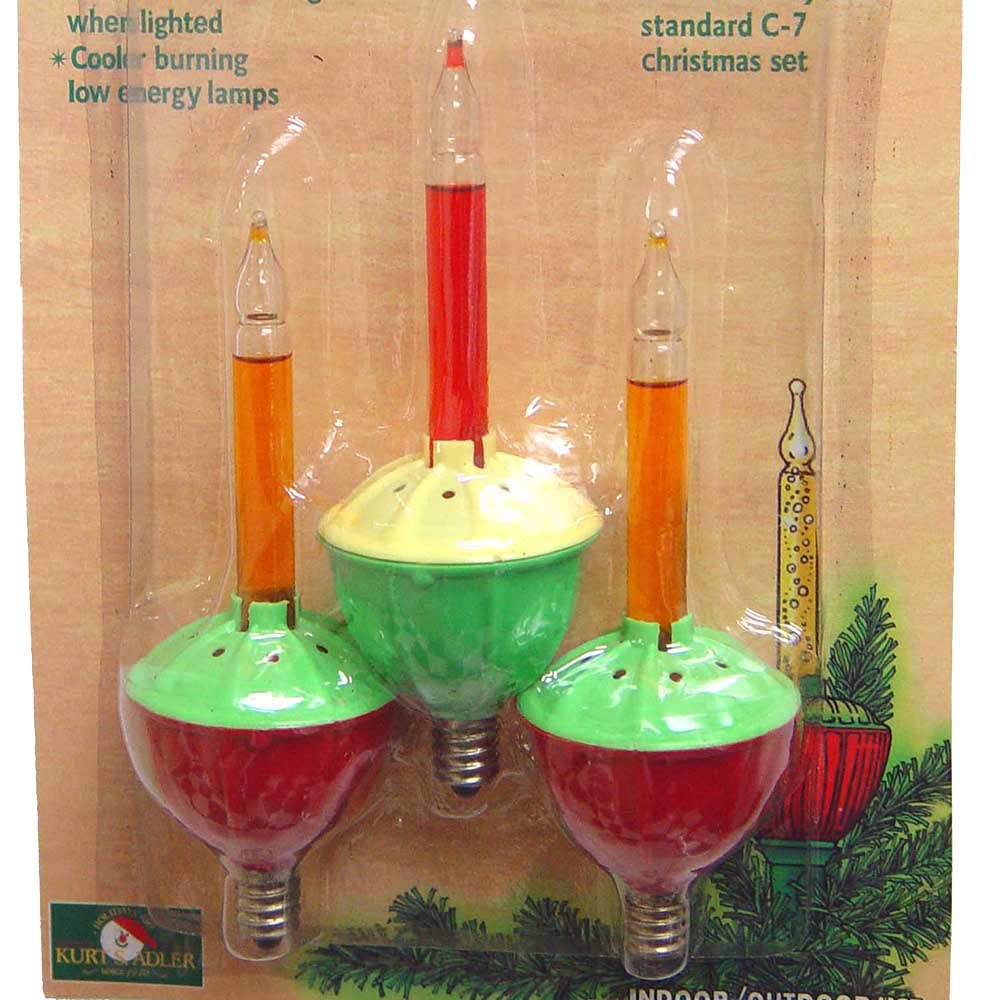 Q: What is included in the 3 Piece Set of Replacement Bulbs?A: The 3 Piece Set includes three replacement bulbs, featuring vibrant red and orange bubble lights to enhance your holiday decor.
