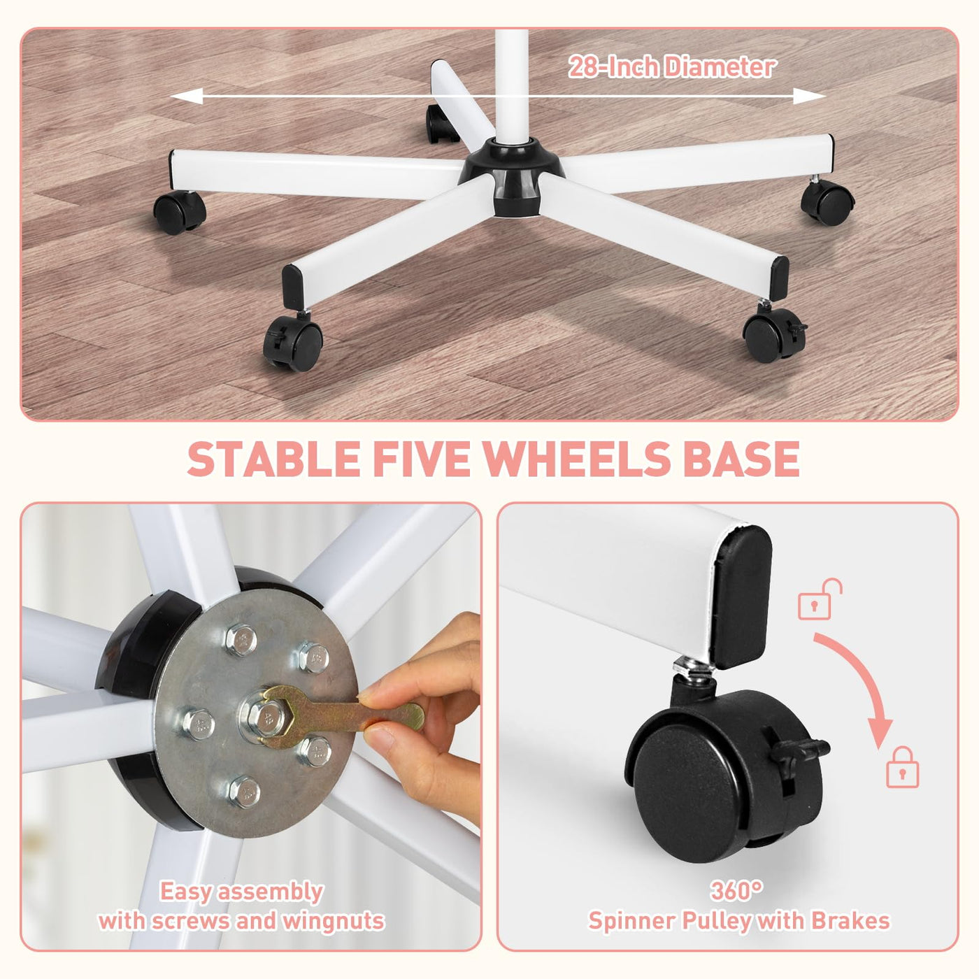 Kuvrs 10X Magnifying Floor Lamp With Light, 5 Wheel Rolling Base Esthetician Light, 2200 Lumens Infinite Warm & Cold Dimming Led