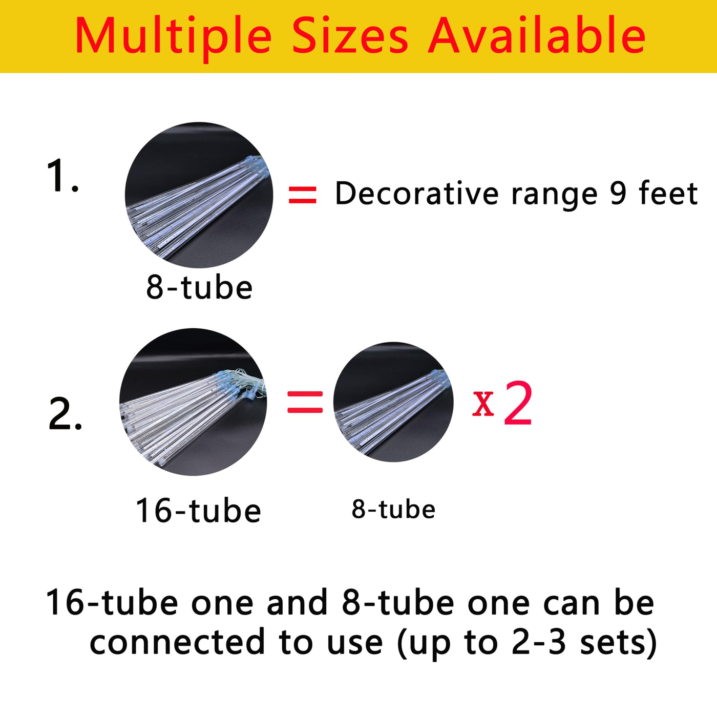 The Kwaiffeo Meteor Shower Lights Are Crafted From well-made Polycarbonate, Ensuring Durability And Performance. Each Light Is Powered By An Individual Ic Chip, Allowing For A Stunning Cascading Effect As The Lights Illuminate Sequentially. These Lights Are Designed For Both Indoor And Outdoor Use, Making Them Versatile For Various Celebrations, Including Christmas, New Year, Halloween, And Weddings. The 8-Tube Design, With A Total Of 192 Led Bulbs, Provides Bright And Beautiful Lighting While Being Energy Efficient.