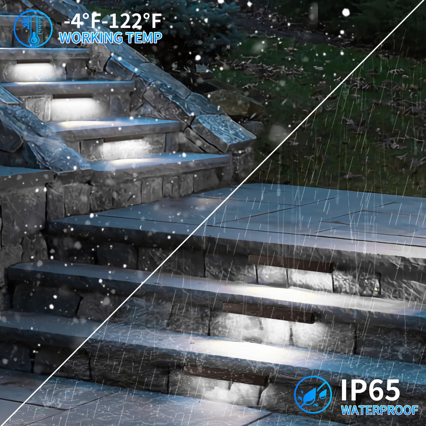 Q: What is the lifespan of the Kwinmyso outdoor step lights?A: These outdoor step lights have a long lifespan of 50,000 hours, ensuring that they provide reliable lighting for many years without needing frequent replacements.