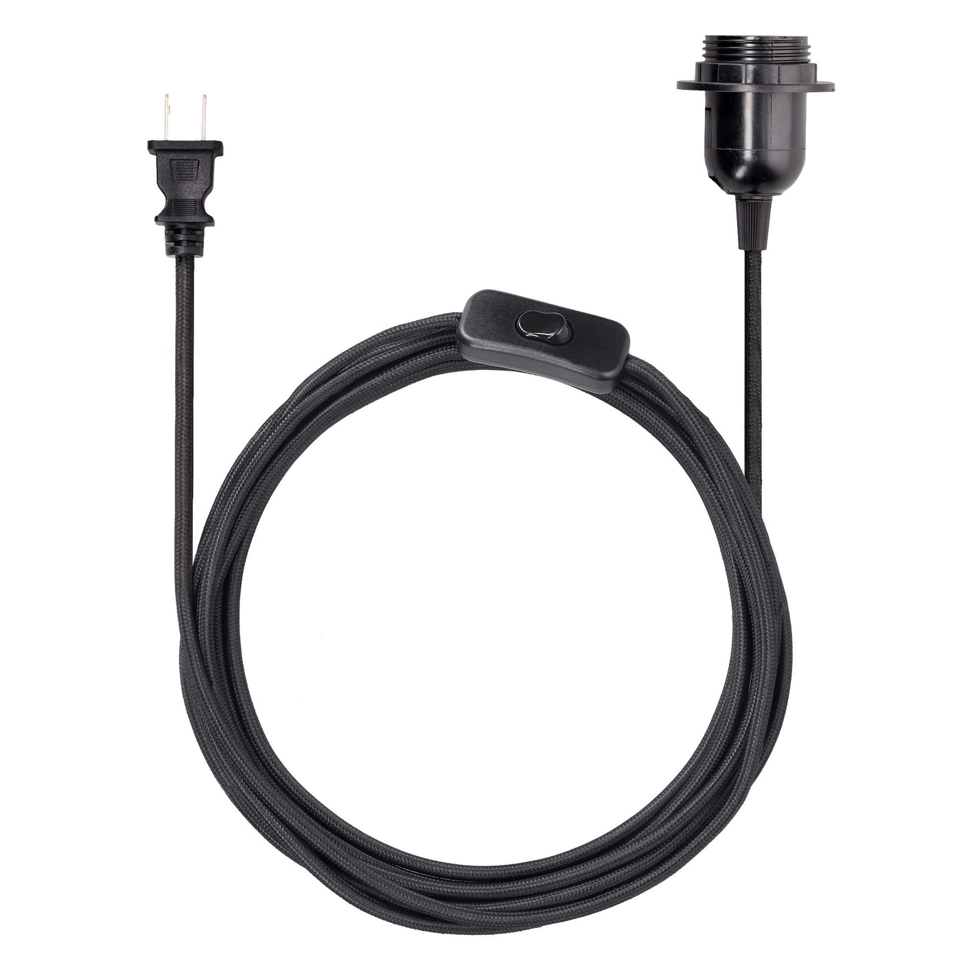 Kwmobile 6Ft Black Fabric Pendant Lamp Cord With Plug & E26 Socket For Diy Ceiling Lighting