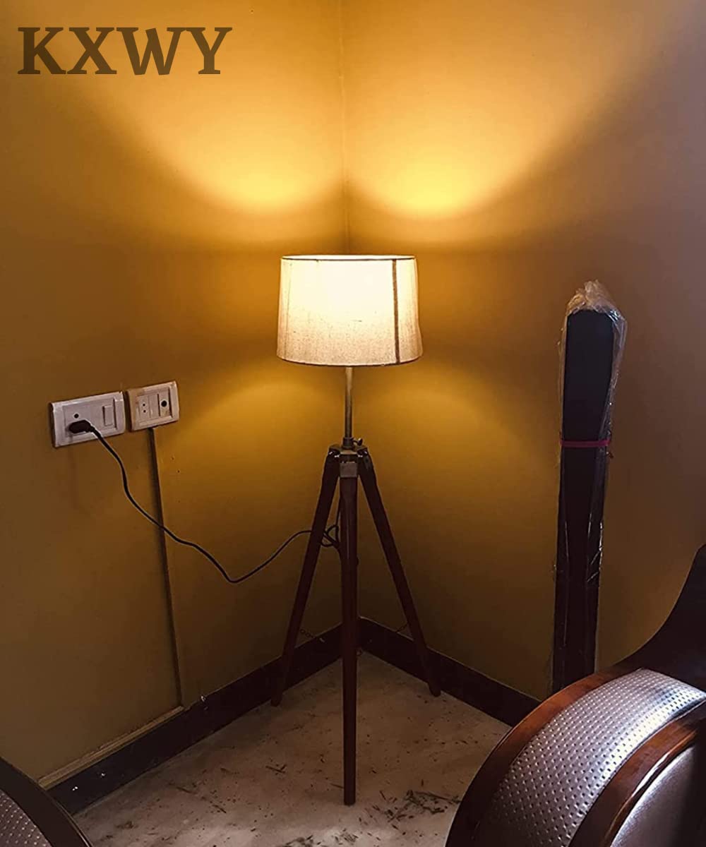 KXWY Tripod Floor Lamp | Antique Designed Jute Fabric With Khadi Shade Decorative Wooden Crafter Standing LED Floor Lamp For Liv