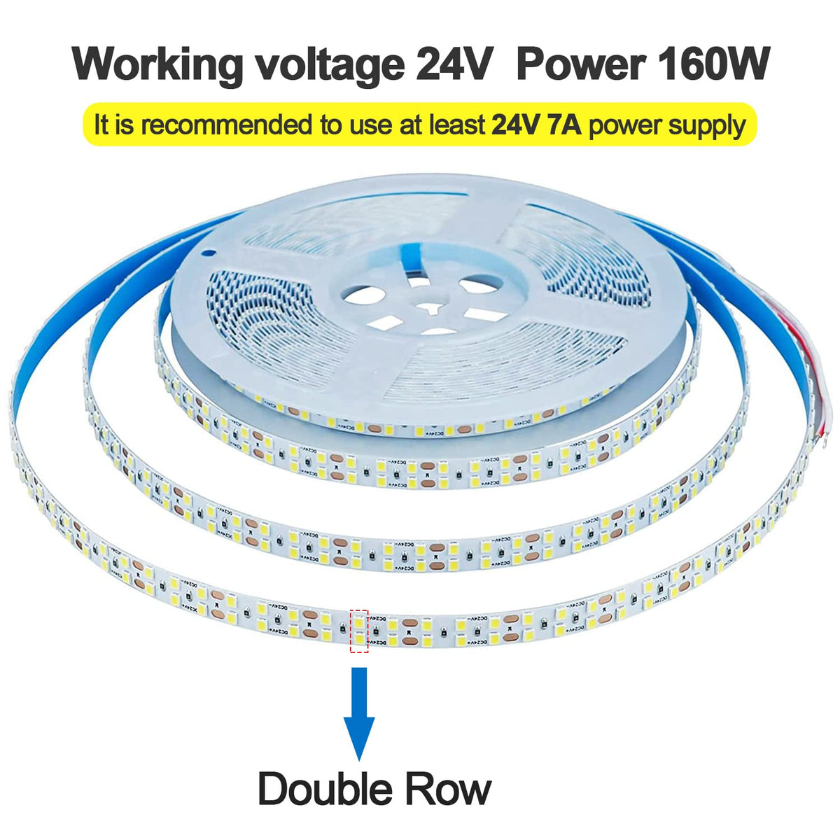 Kxzm 24V 32.8Ft(10M) Double Row Led Strip Light Warm White 3000K 2400Leds 2835Smd 160W High Brightness 11000Lm No-Waterproof Ip2