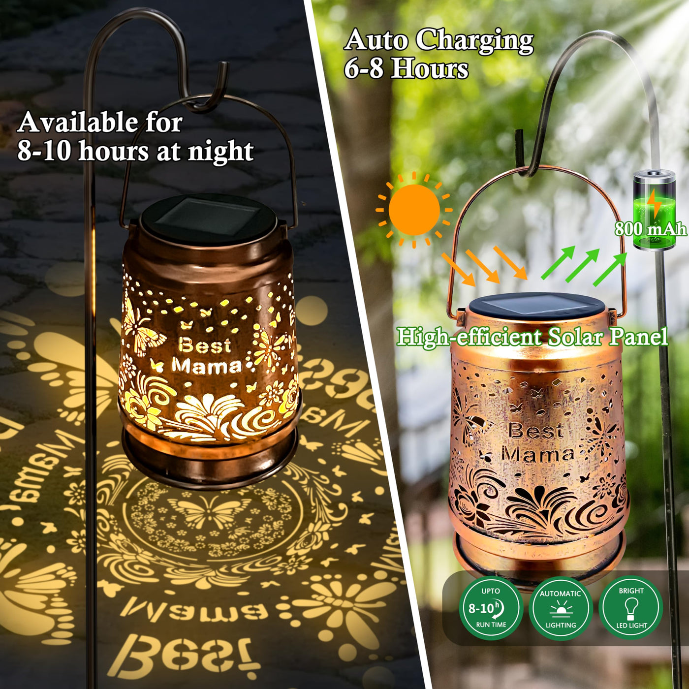 Q: What materials are the KY&BOSAM solar lanterns made from?A: The solar lanterns are made of durable metal, designed to withstand outdoor conditions while providing a beautiful decorative touch.