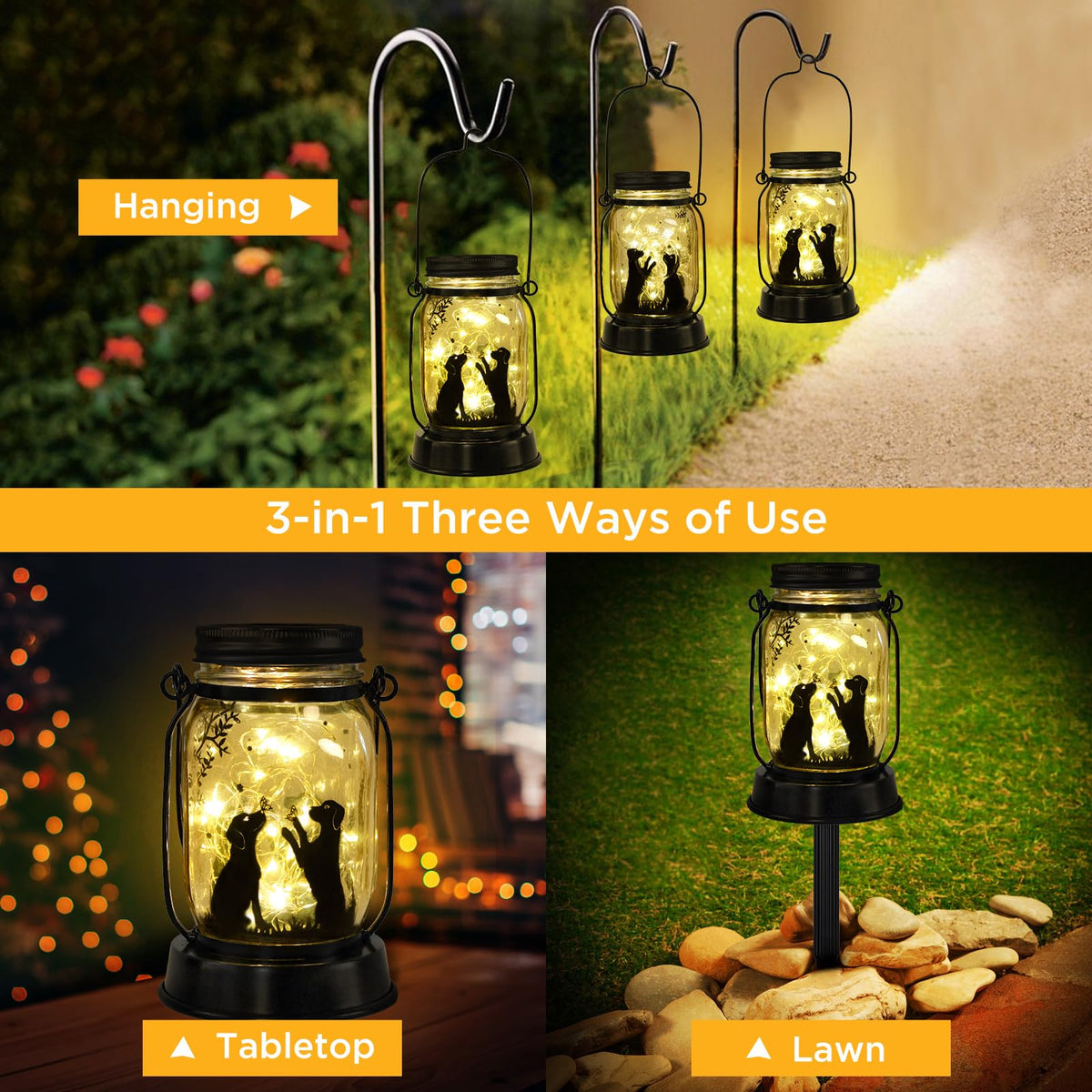 Solar Lights Outdoor Dog Lantern Garden Decor 3In1 Dog Lamp Garden Gifts Birthday Gift Dog Mom Gifts For Women Grandma Jar String Light Dog Gifts For Dog Lovers Gifts Memorial Lanterns For Loss Of Dog