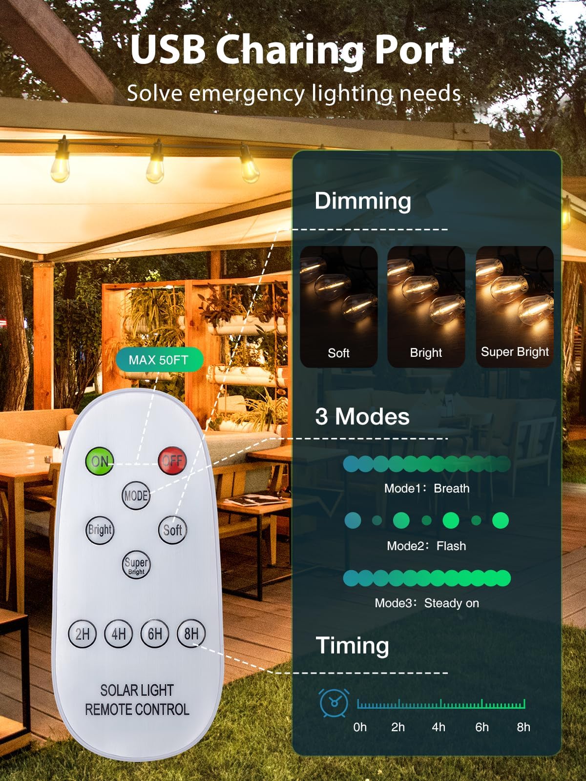 Kyy 102Ft(96+6) Solar String Lights Outdoor With Usb Port Remote Control, Led Waterproof Solar Powered Patio Lights With 32 Sock