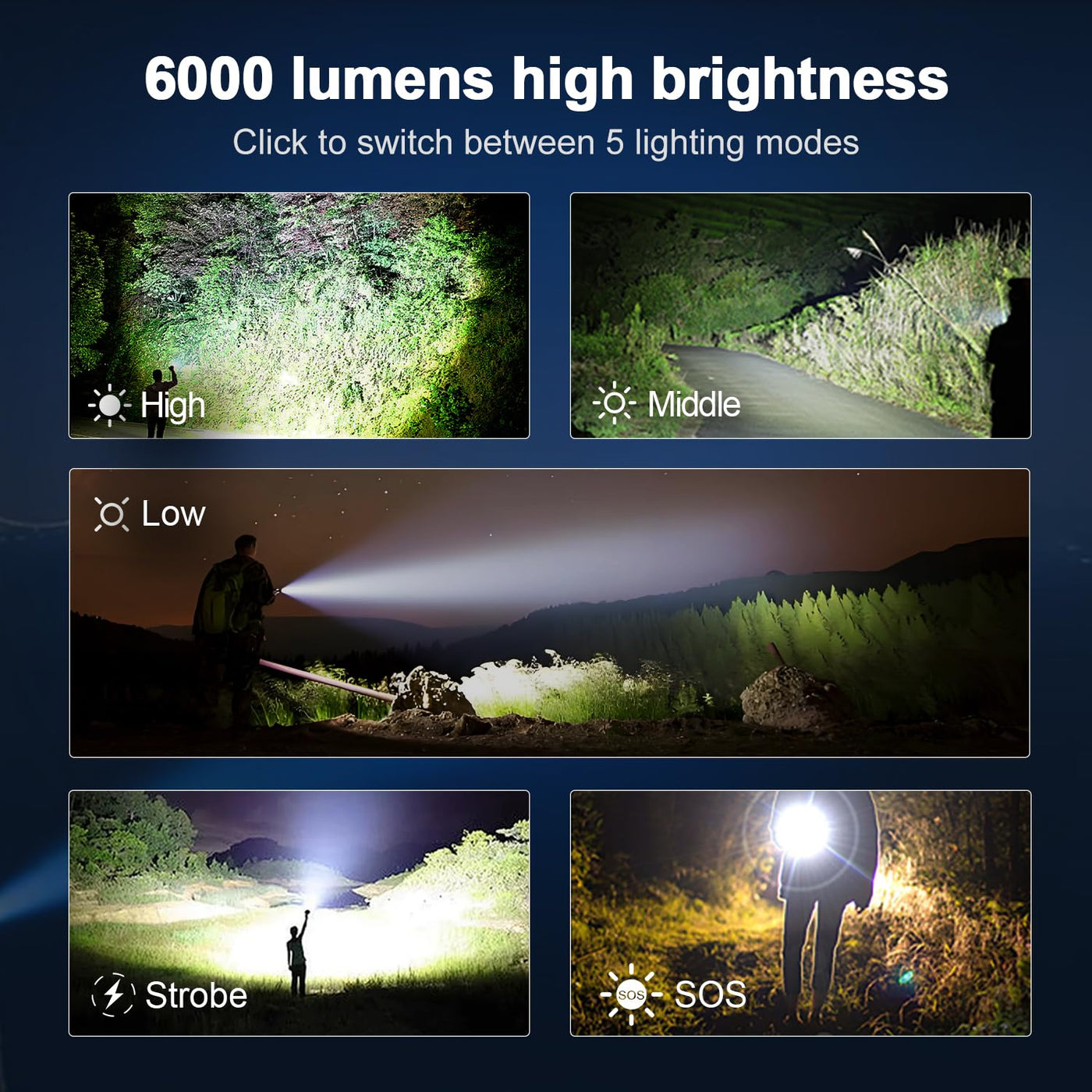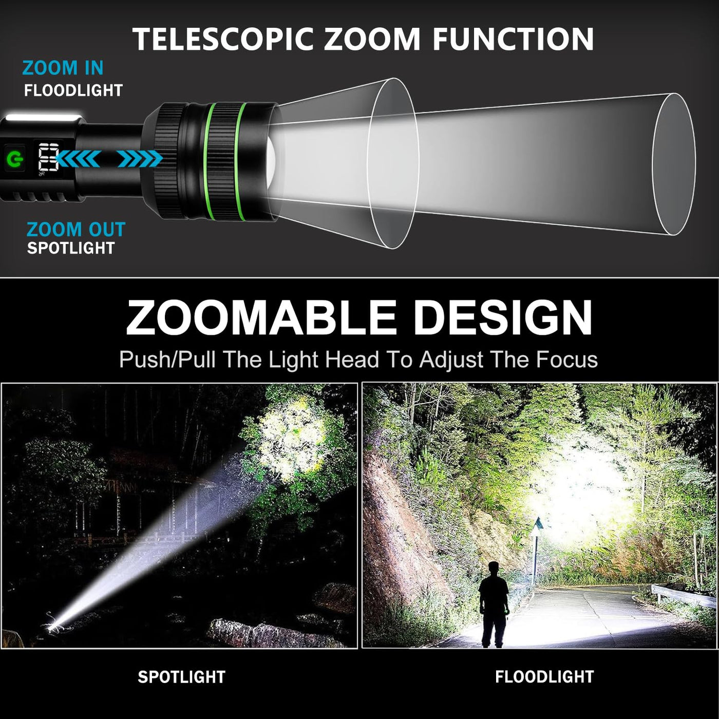 KZK Extremely Bright Rechargeable Flashlight, 9000 High Lumens LED Flashlights with Long Handle,Powerful Handheld Flashlight wit
