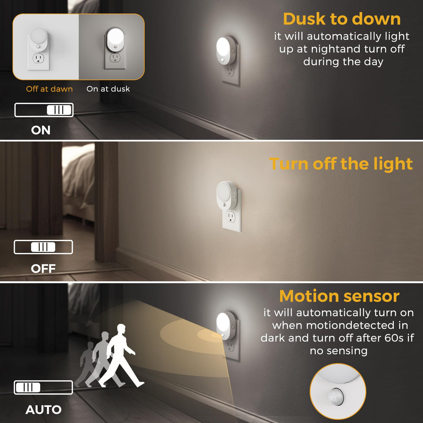 L Lohas Led Motion Sensor Night Light,[2-Pack] Night Lights Plug Into Wall,2 In 1 Built-In Motion Sensor And Dusk To Dawn Sensor