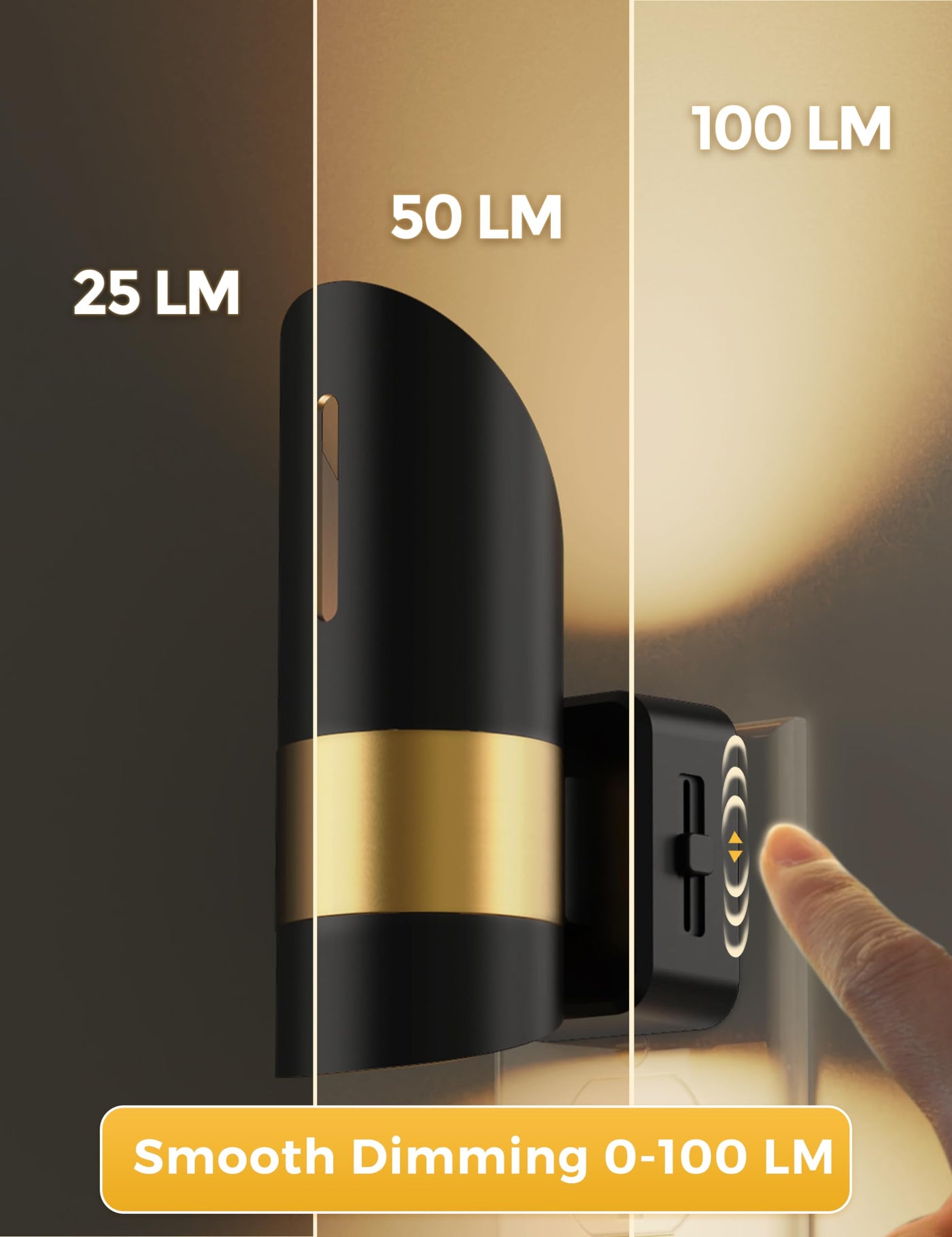 - **Adjustable Brightness**: Equipped with a sliding dimmer switch on the side of the plug base, this dimmable night light allows you to easily adjust brightness levels from 0 to 100 lumens to suit your various usage scenarios.