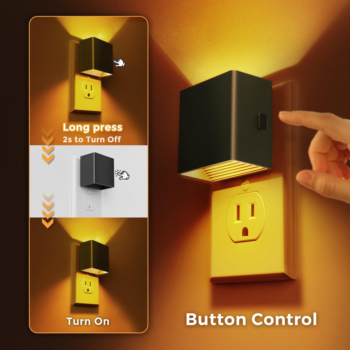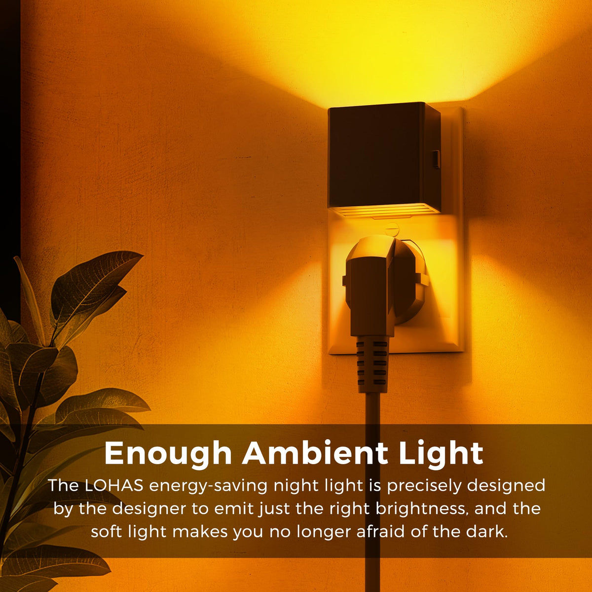 L Lohas Led Night Light,Night Lights Plug Into Wall,[2-Pack]Dimmable Night Light With Light Sensor,1800K Amber Light,Modern Home