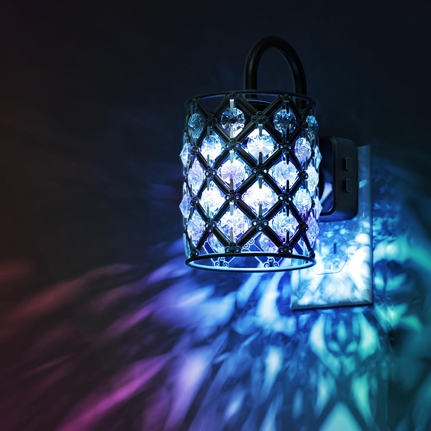 Enhance your space with our Plug-in Light Control Night Light-a perfect blend of modern design and smart functionality. Featuring a sleek J-shaped bend tube with a metallic matte black finish and a diamond grid crystal wall lamp design, this night light adds a touch of elegance to any room. The 2700K warm white + RGB color-changing lighting creates a cozy ambiance, while the light sensor ensures automatic operation in low-light conditions. Control is effortless: the top button cycles through smooth color transitions (red, cyan, purple, green, blue, yellow, pink, orange, and 2700K at 100% or 50% brightness), while the bottom button activates a dynamic marquee mode or powers the light on/off with a long press. The 180 rotatable US 3-prong plug offers flexible installation, and the pearl cotton packaging ensures safe delivery. Ideal for bedrooms, hallways, or nurseries, this night light combines style, convenience, and energy efficiency for a soothing glow anytime.