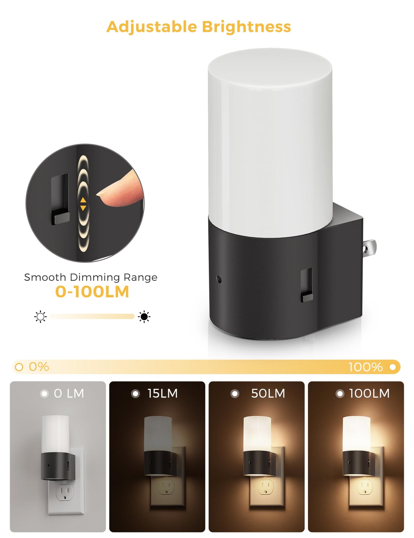 L Lohas Led Night Lights, Dusk To Dawn Sensor, 3000K Soft White, Dimmable, 2 Pack