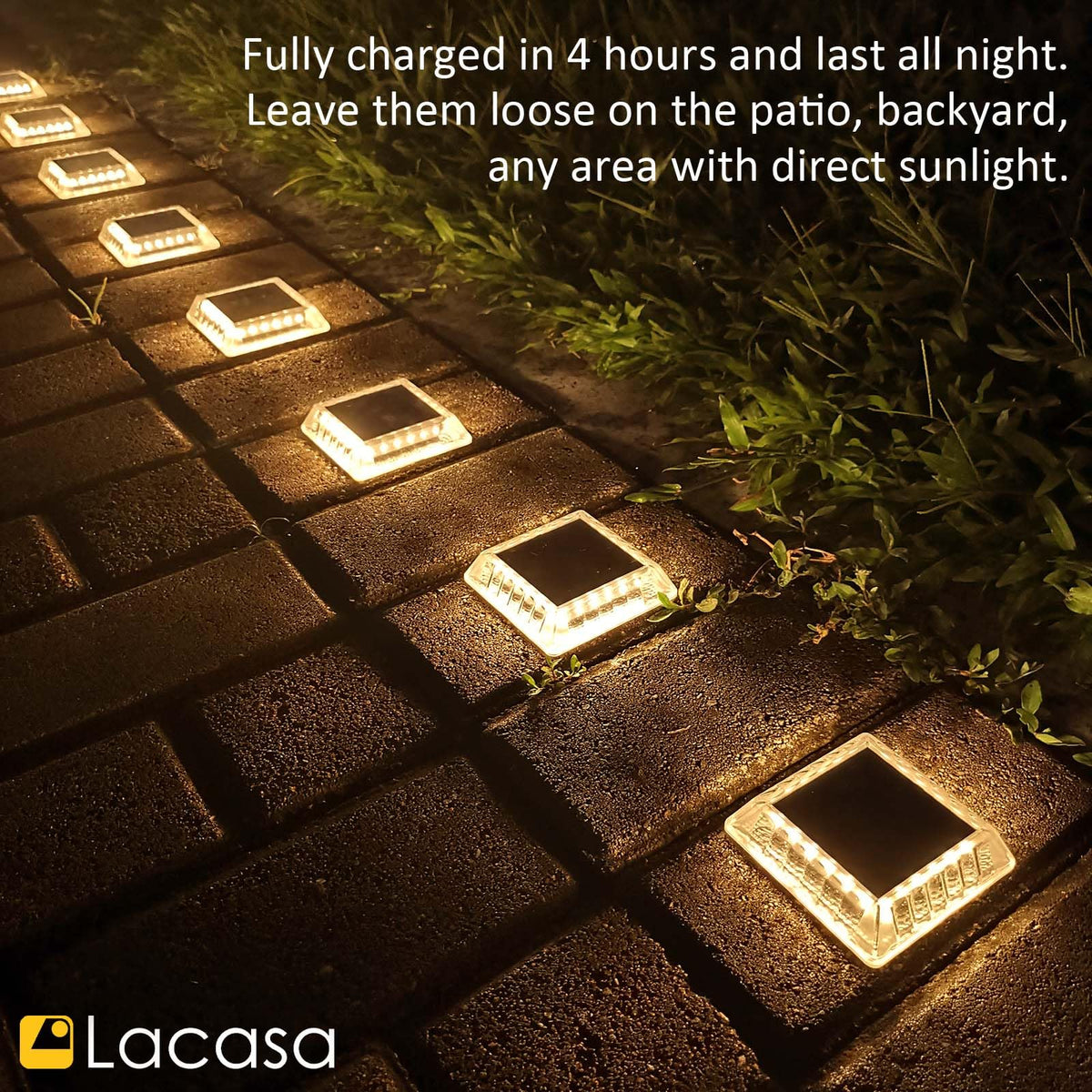 Lacasa Solar Deck Lights, 8 Pack 30Lm Led Dock Lights Warm White 2700K, Outdoor Solar Powered Step Lights Light Up All Night Ip6