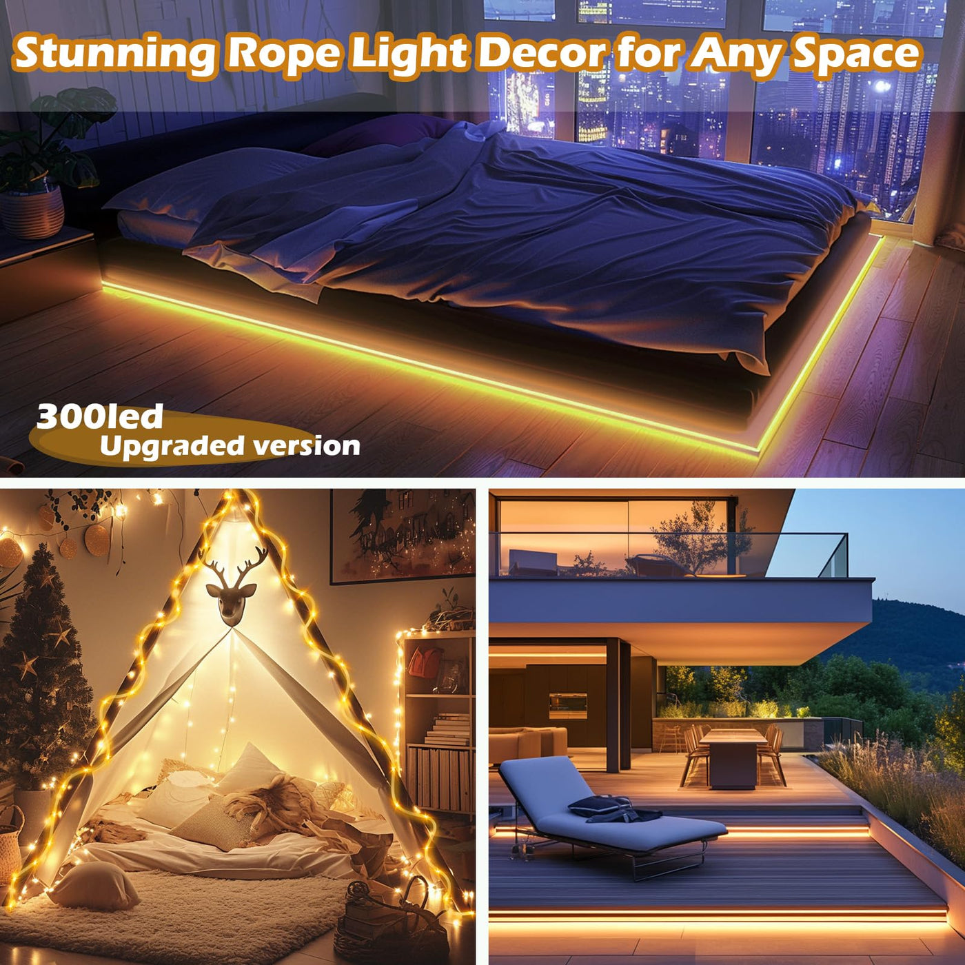 Lairtpow 98Ft Waterproof 300Leds Solar Rope Lights, Type C Charging, Remote-Controlled, For Outdoor Pathway Pool Patio Party Gar