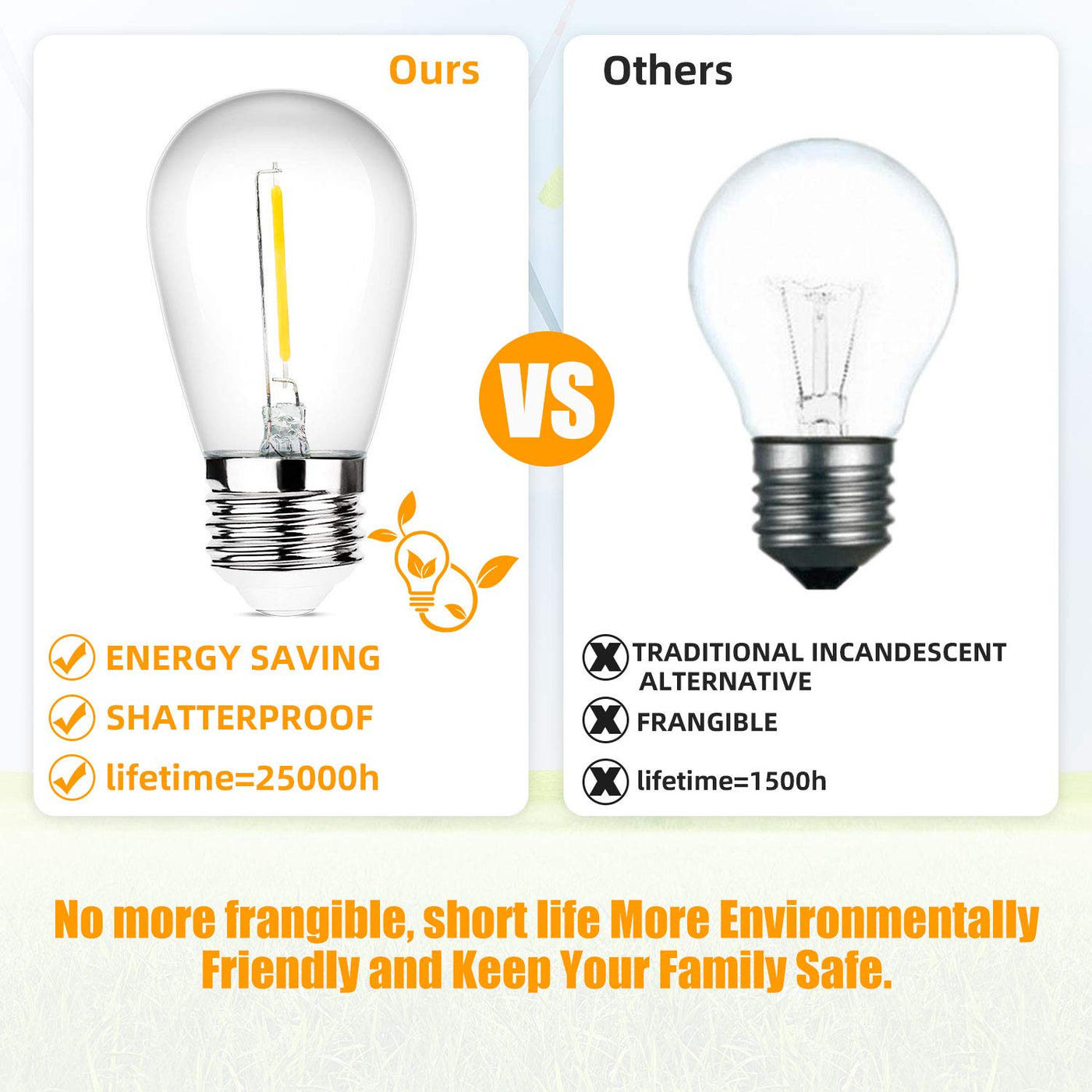 Weatherproof & Shatterproof: Made from durable plastic, these bulbs are safer than glass. IP65 waterproof rating and withstand winds up to 50 MPH, making them ideal for outdoor use.