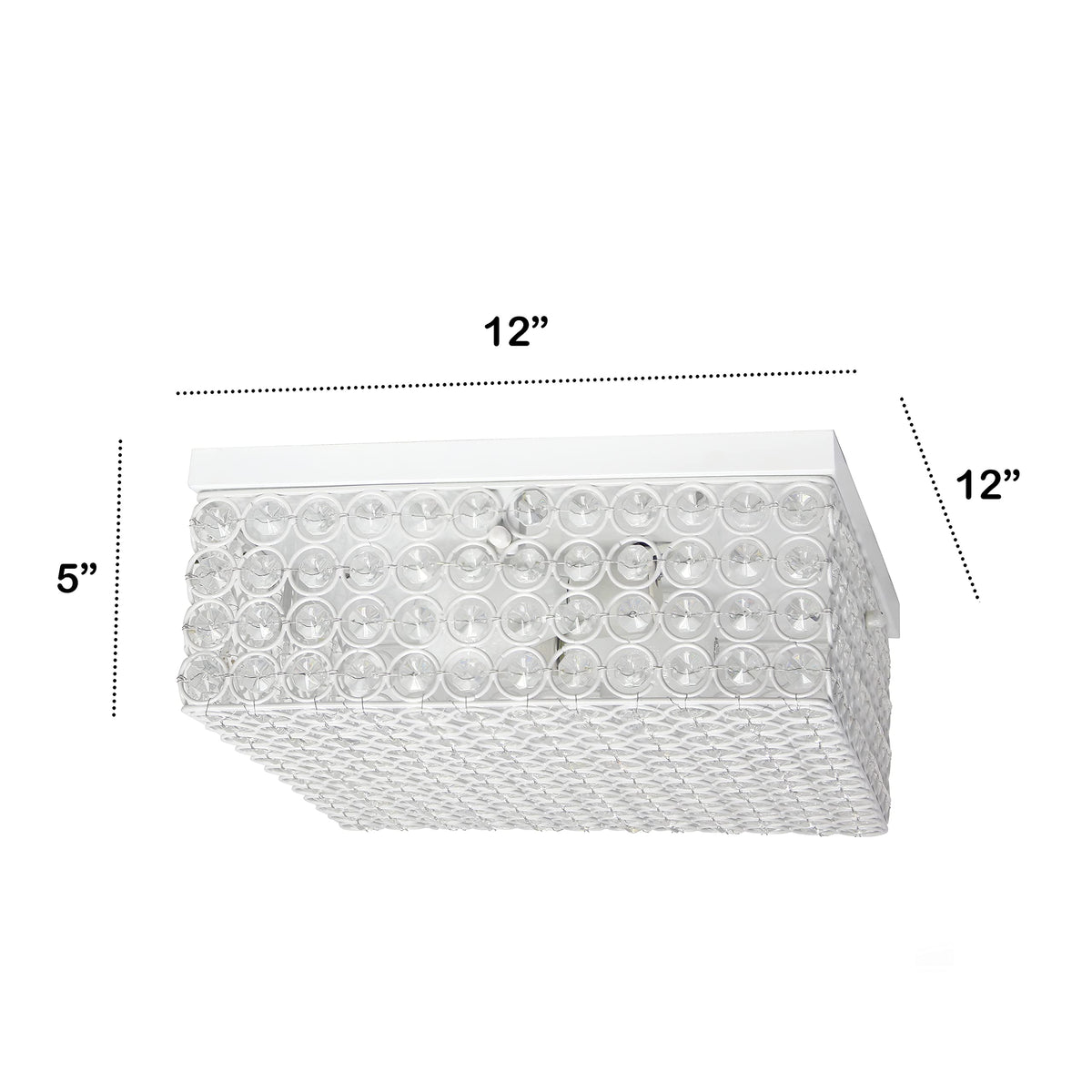 Q: What are the dimensions of the Lalia Home Glam 2 Light Flush Mount?A: The dimensions of the Lalia Home Glam 2 Light Flush Mount are twelve inches in length, twelve inches in width, and five inches in height.