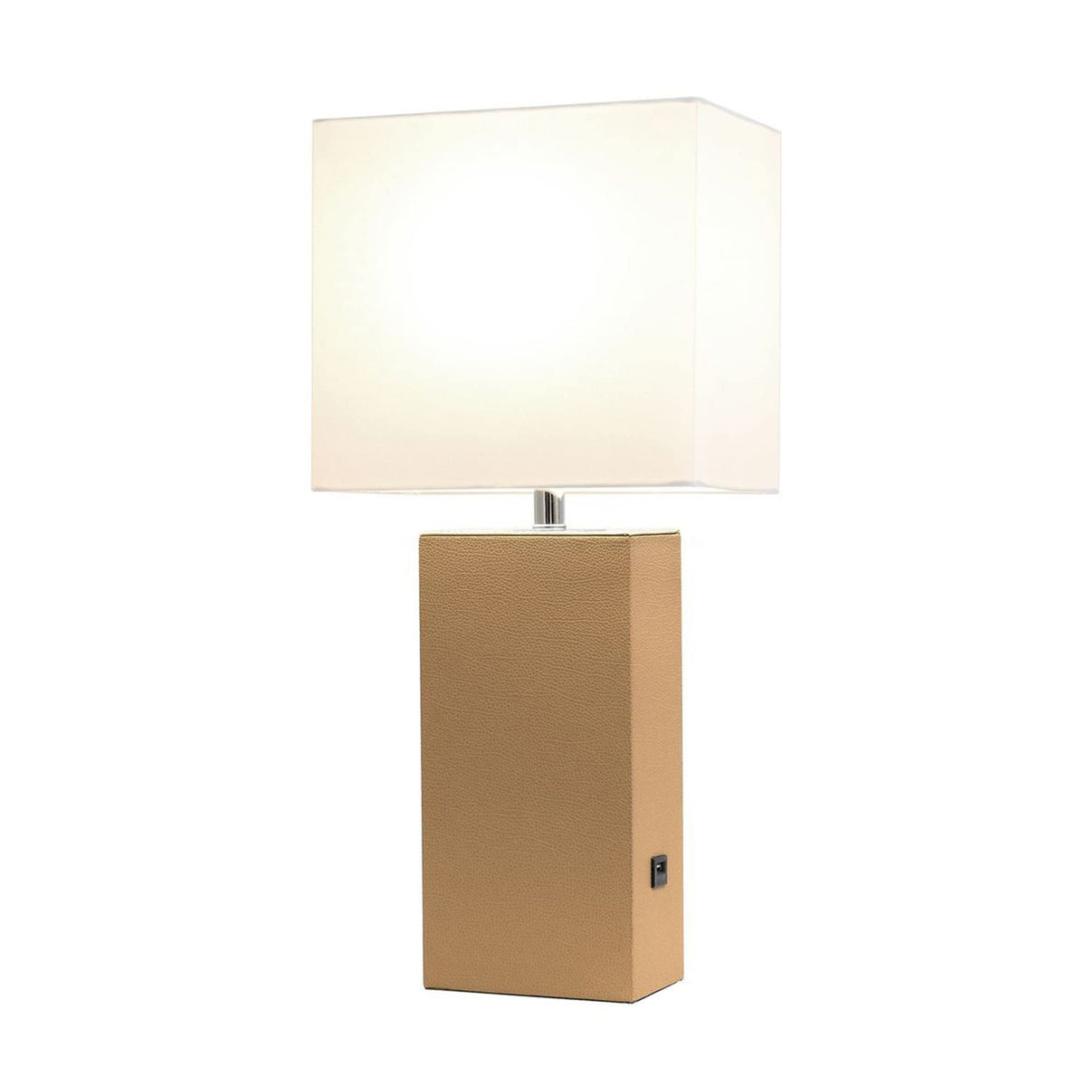 Lalia Home 21" Beige Leather Base Bedside Table Lamp With Usb Port & White Shade