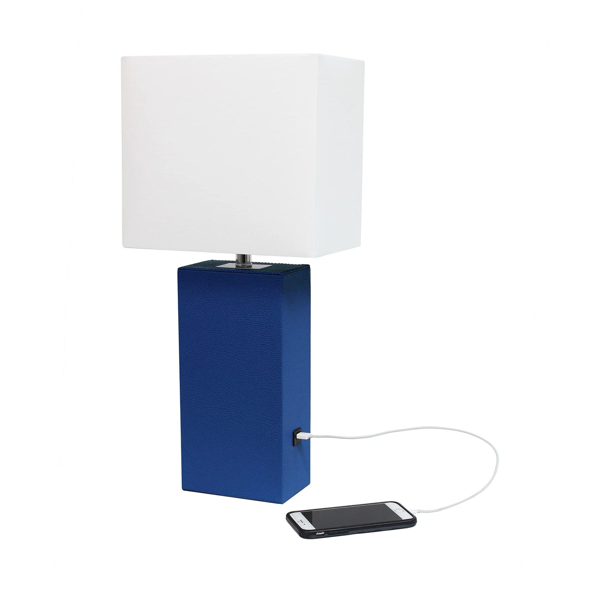 Lalia Home 21" Blue Leather Base Bedside Table Lamp With Usb Port & White Fabric Shade