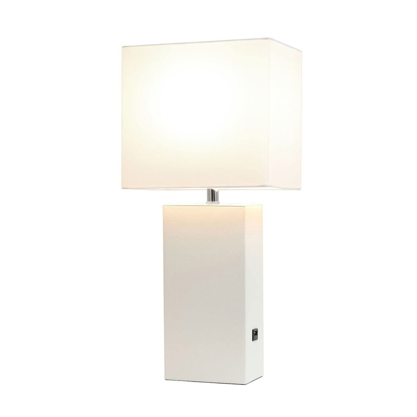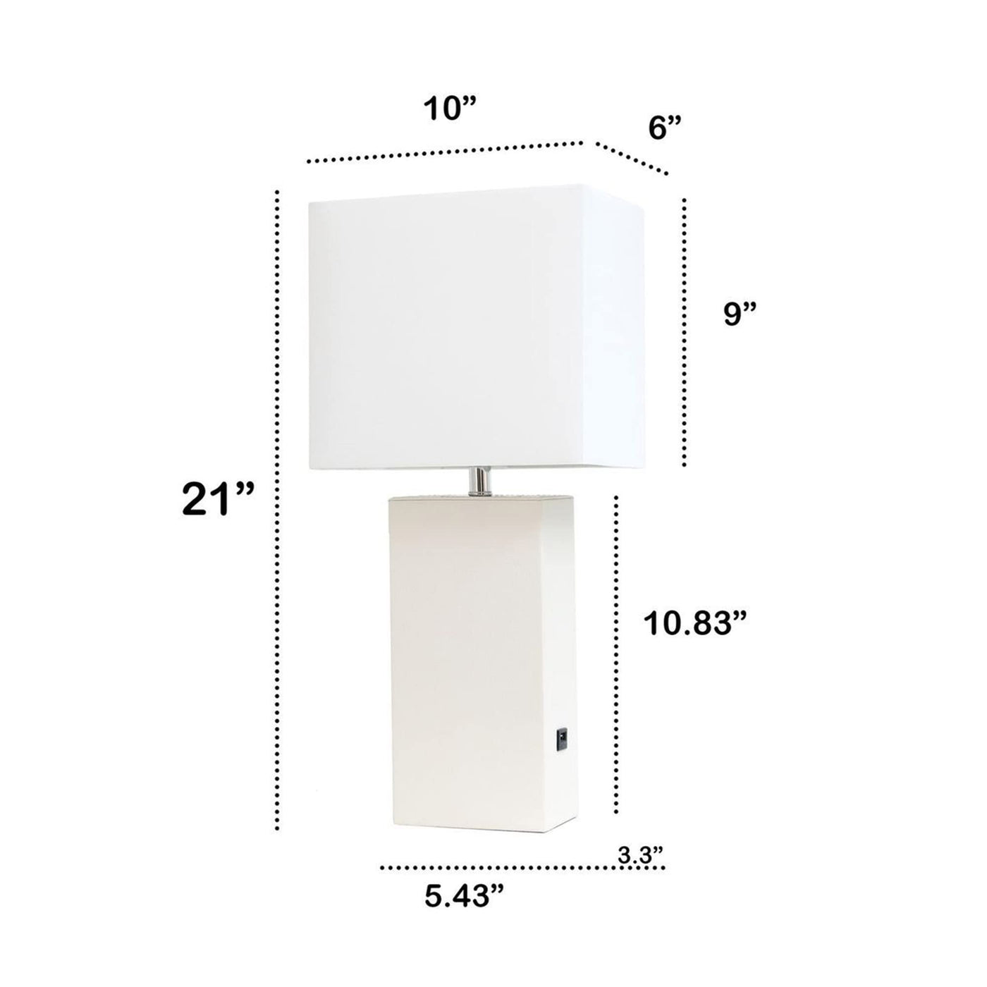Lalia Home 21" Leather Base Bedside Table Lamp With Usb Port & White Fabric Shade, Modern Decor