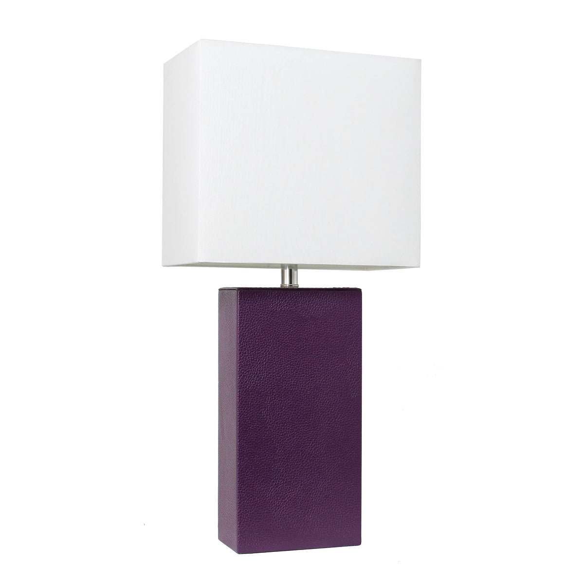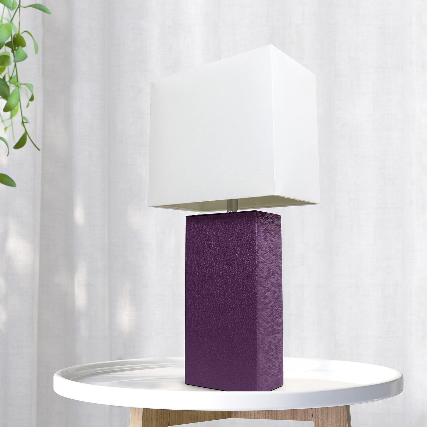Lalia Home 21" Leather Base Modern Bedside Table Lamp, Eggplant Purple Fabric Shade