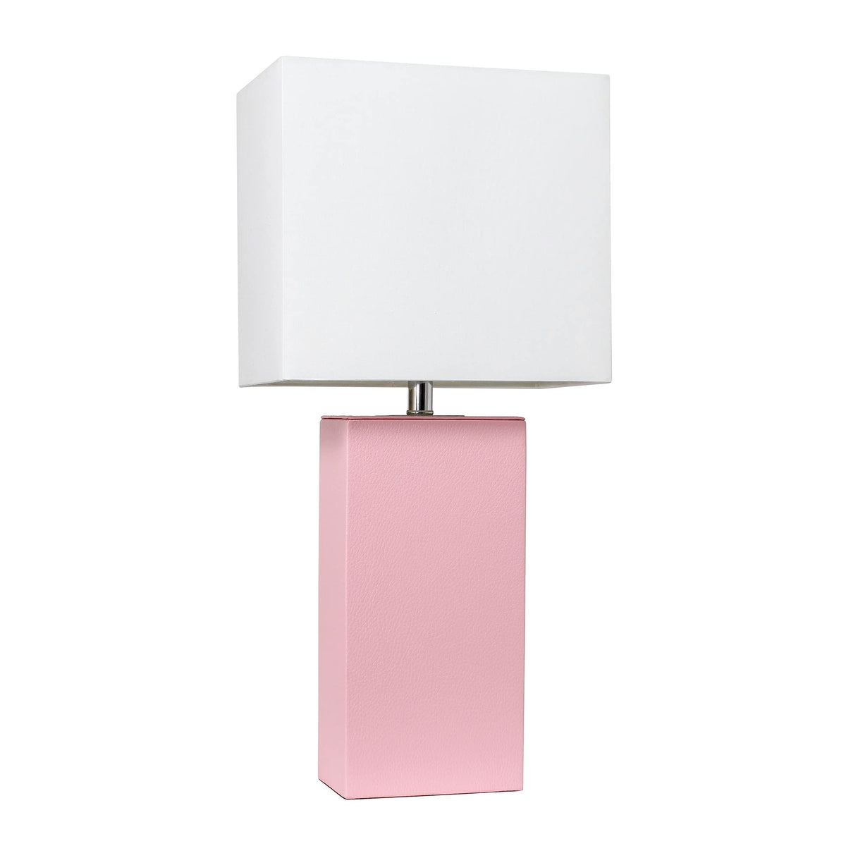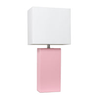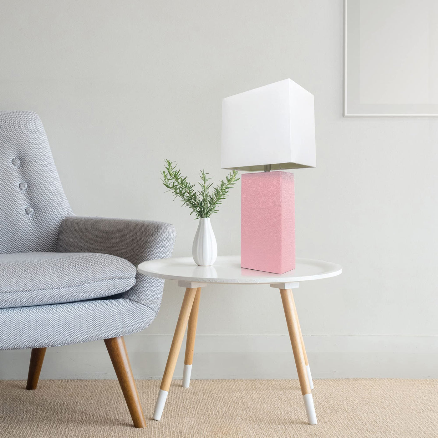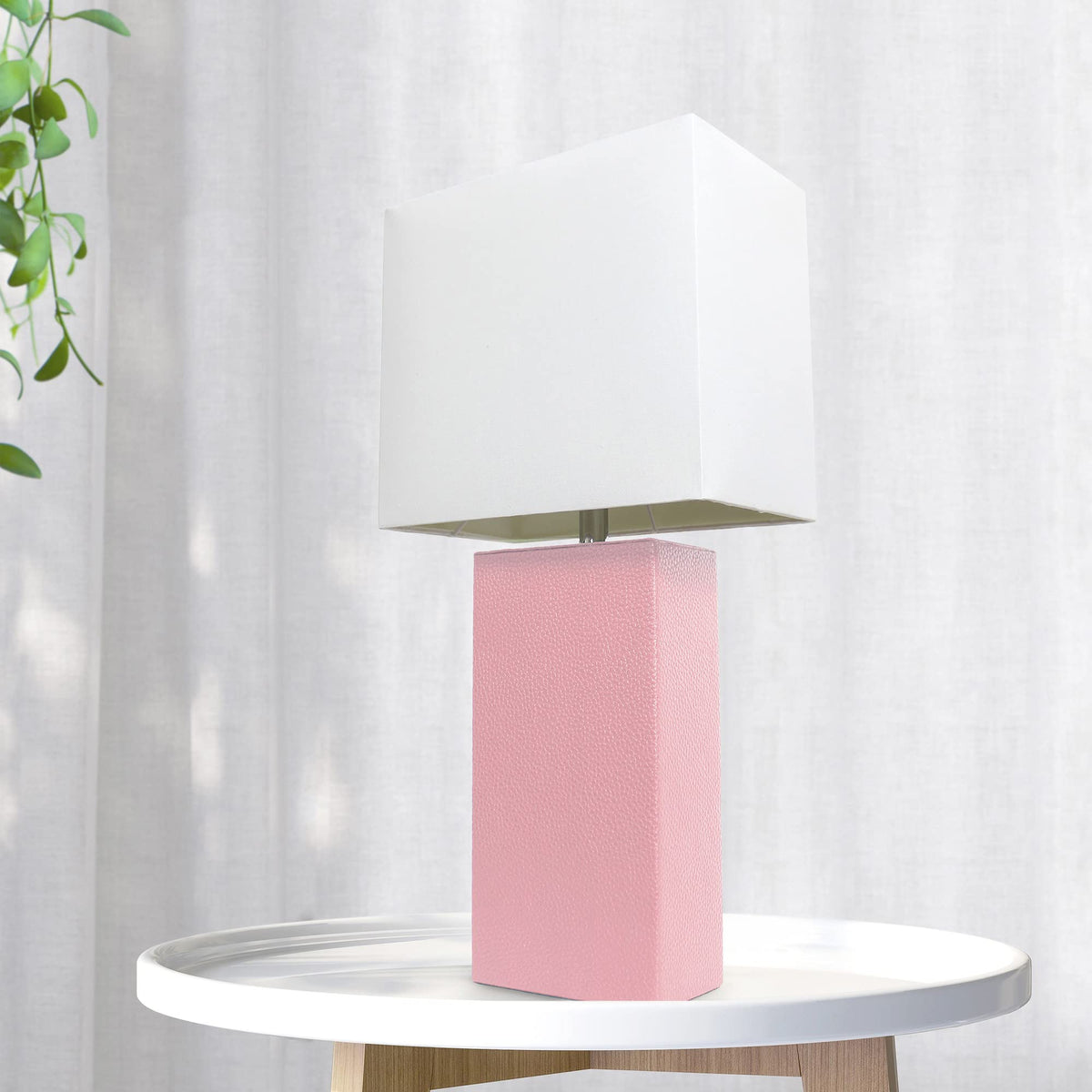 Lalia Home 21" Pink Leather Base Modern Bedside Table Lamp With White Fabric Shade