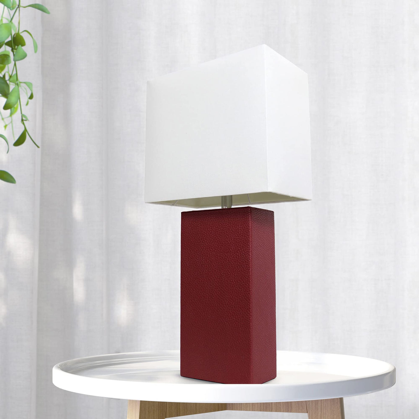 Illuminate your space with the modern elegance of the Lalia Home Red Table Lamp. This beautifully designed lamp effortlessly enhances any room, featuring a stylish leather-wrapped rectangular base and a crisp white fabric shade that delivers both sophistication and function. Perfect for adding a pop of color to your decor, this lamp is not only visually appealing but also practical for everyday use.