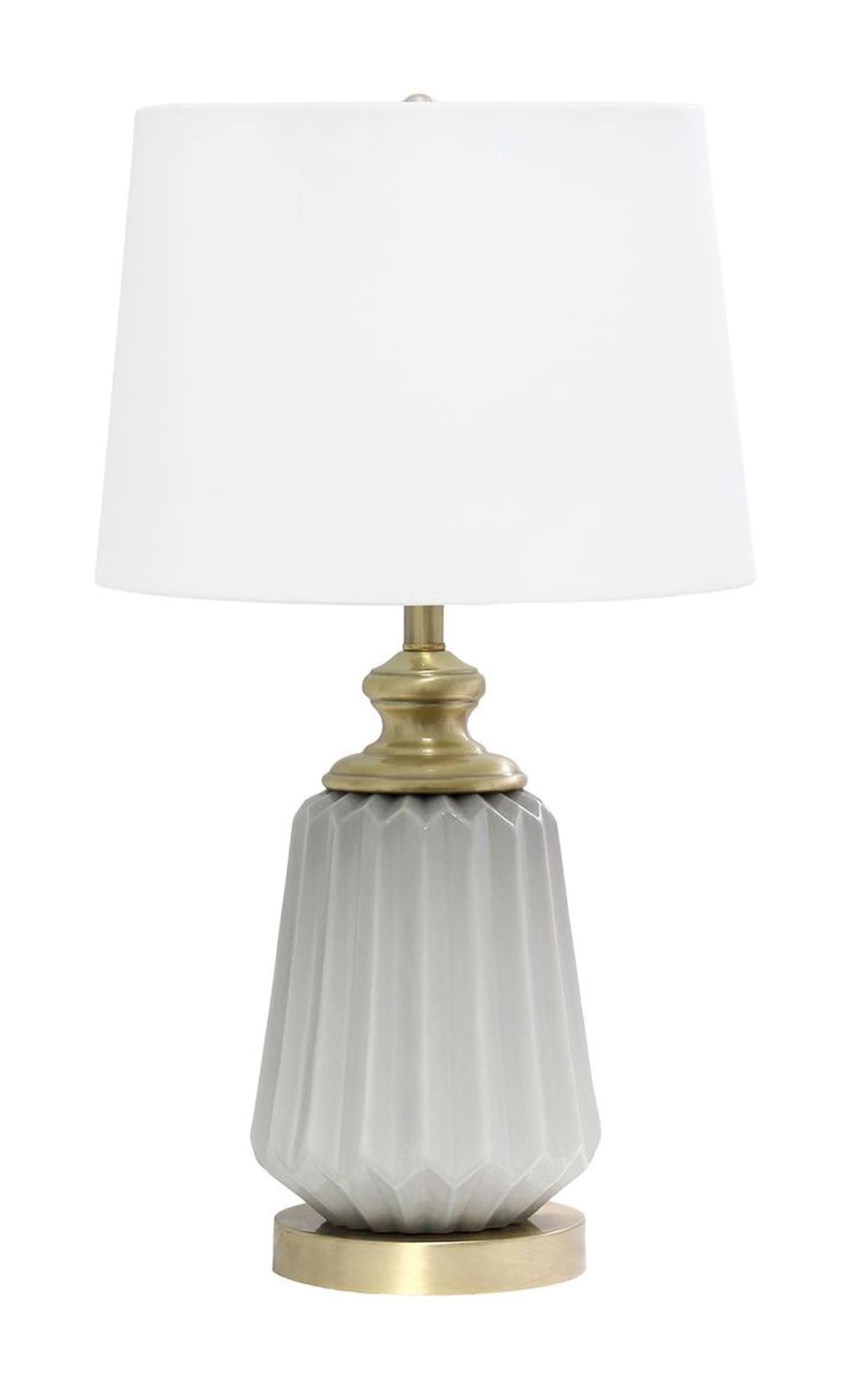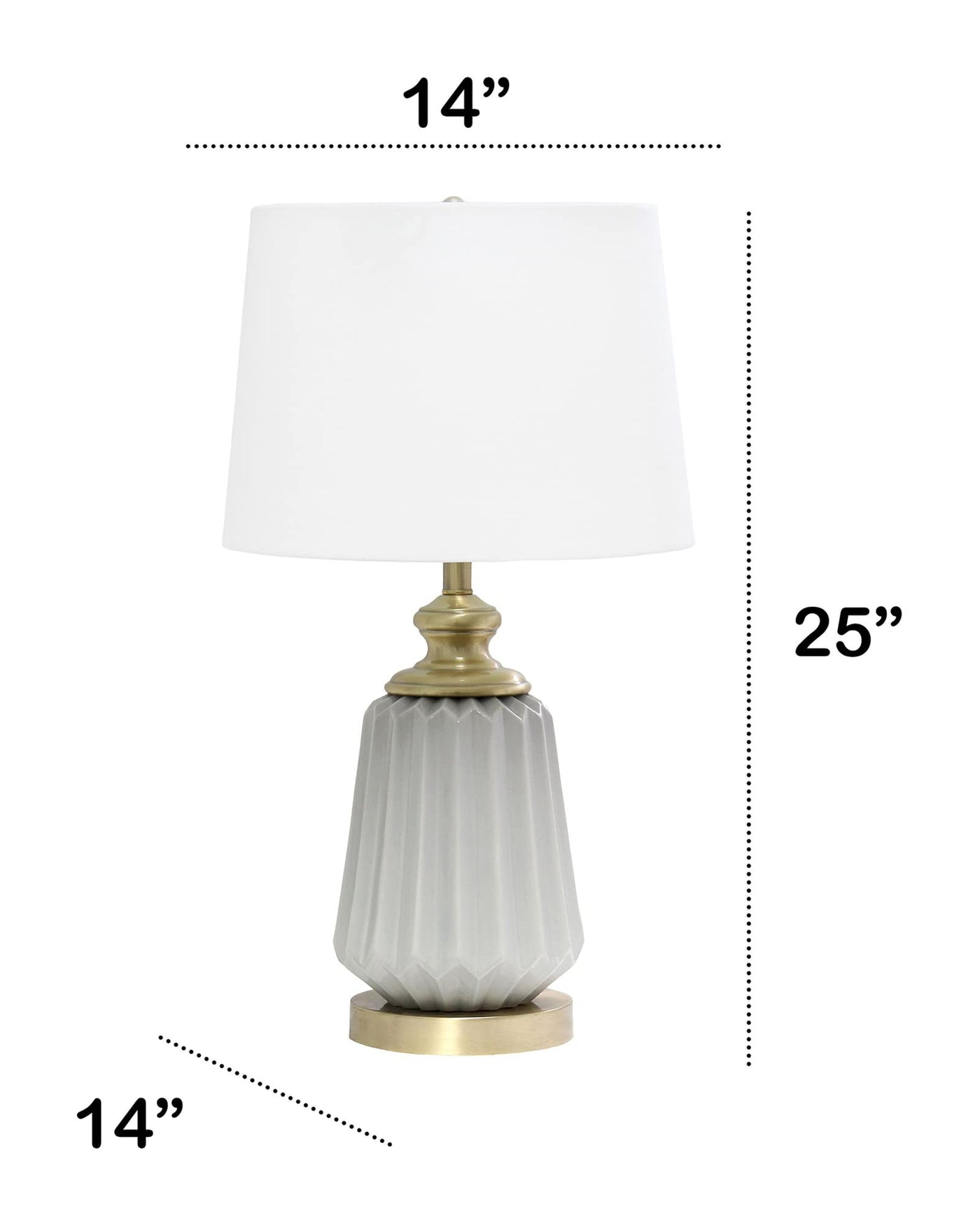 Lalia Home 25" Fluted Ceramic Table Lamp, Gray Fabric Shade & Antique Bronze Base