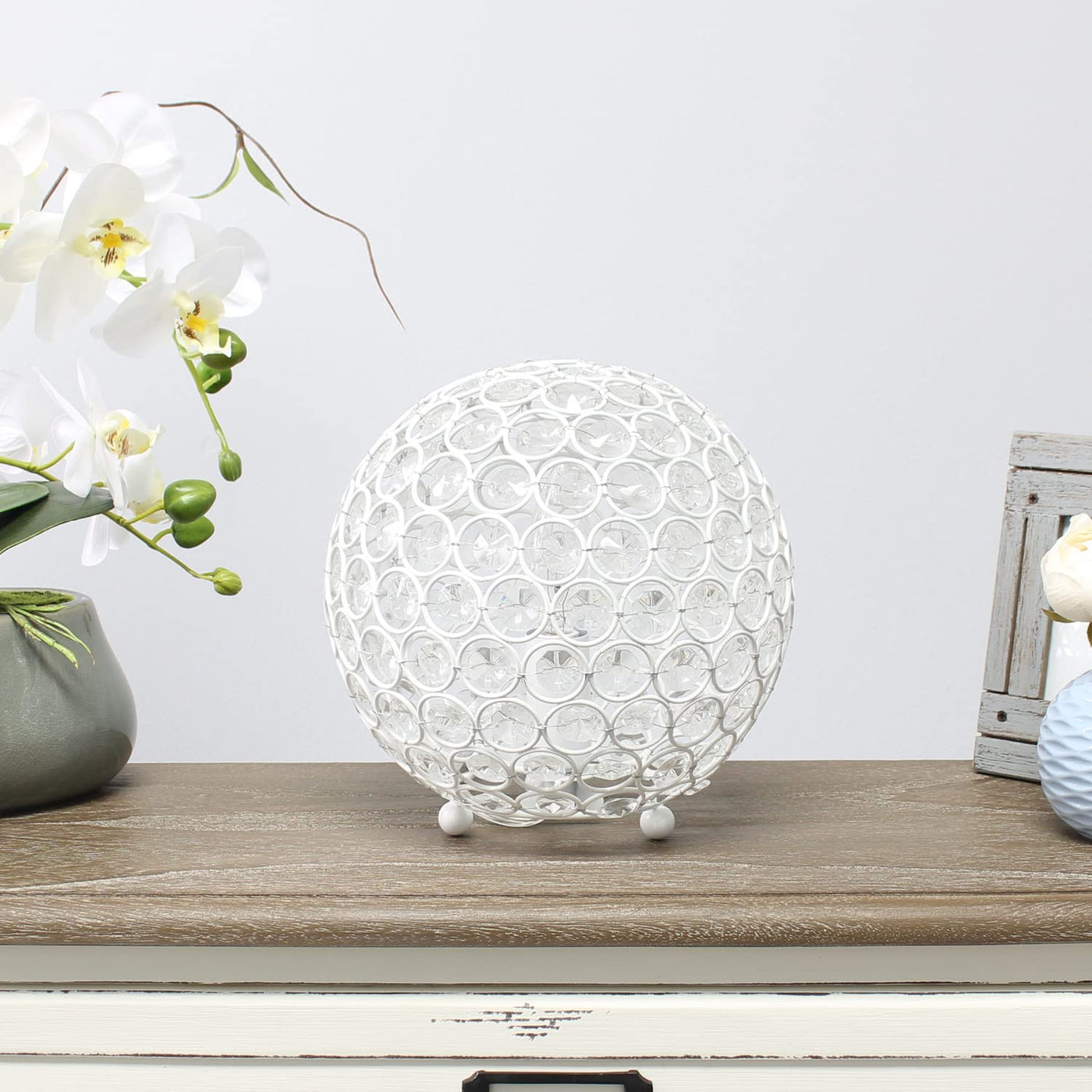 Lalia Home 8" White Metal Crystal Sphere Table Lamp - Contemporary Glam Decor