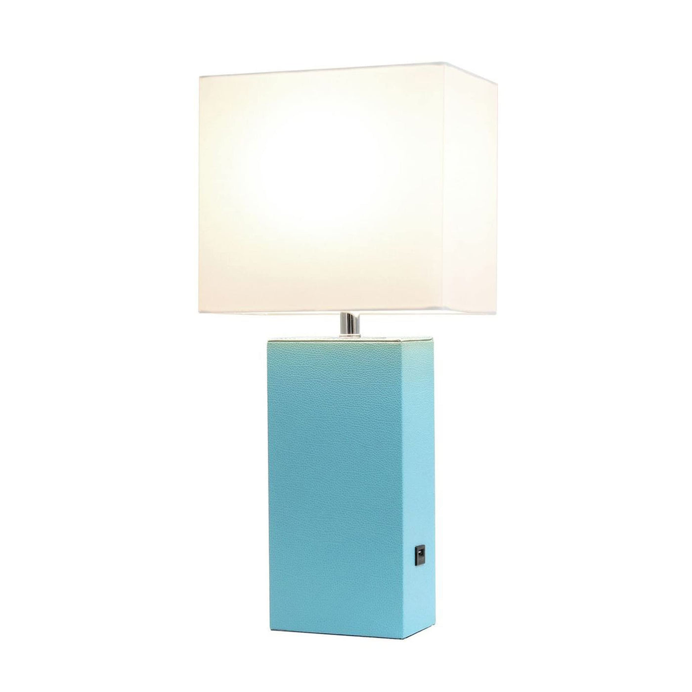 Lalia Home Aqua Leather Base Bedside Table Lamp With Usb Port & White Fabric Shade 21"