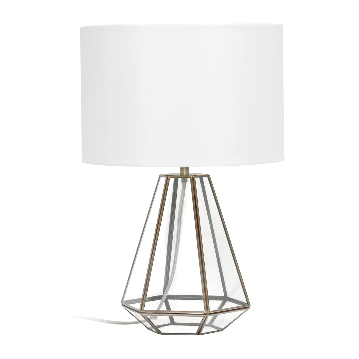 - **Elegant Design**: Featuring a beautiful white fabric drum shade paired with a transparent glass base and brass accents, this lamp adds a classy touch to any room.
