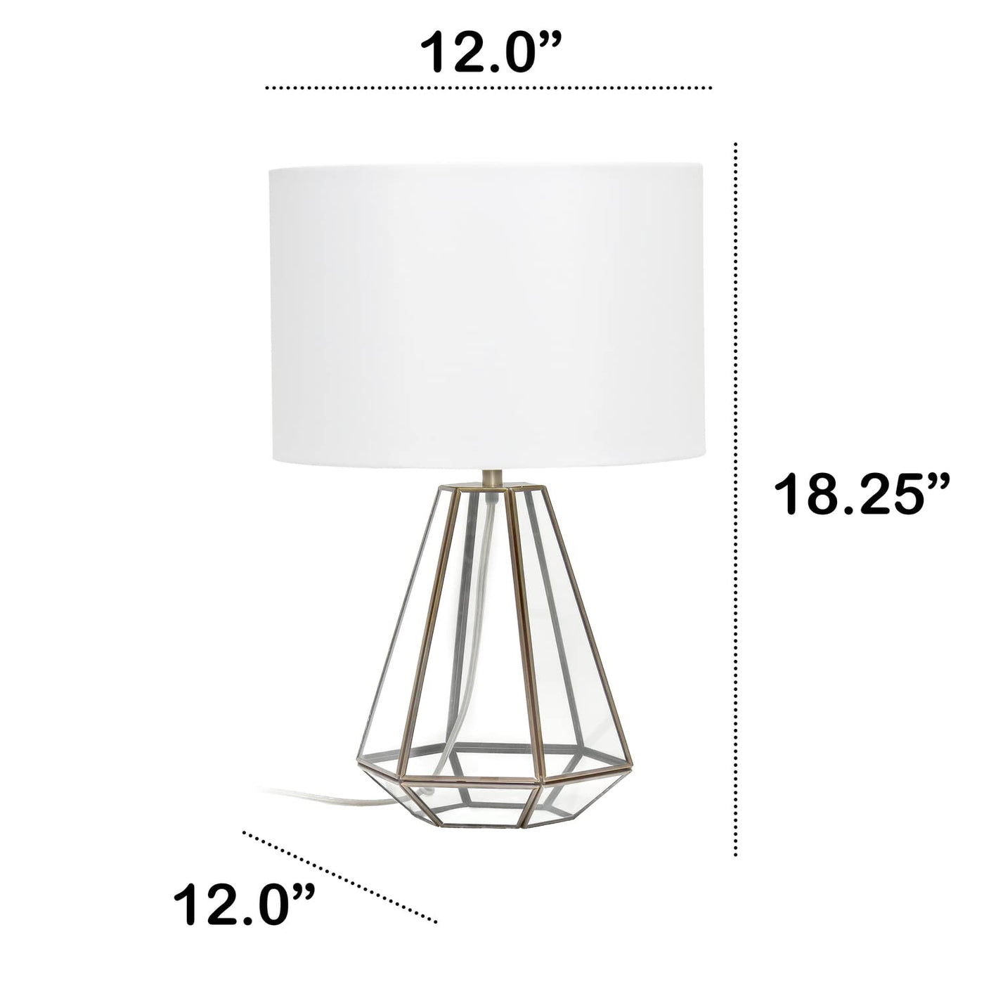 A stunning piece of decor suited to properly light your space is the key to designing this gorgeous triangular shaped table lamp. A transparent glass base with brass metal accents is paired with a white drum shade to inspire a vintage feel with modern class. The glamour and elegant style of this lamp powers on with a push pin on/off switch, making it convenient to place bedside, atop your living room accent table, your foyer entrance, or office space!
