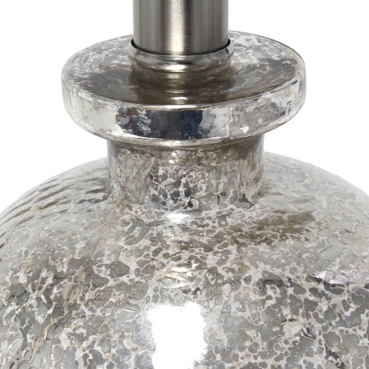 Lalia Home Contemporary Mercury Hammered Glass Jar Table Lamp With White Linen Shade