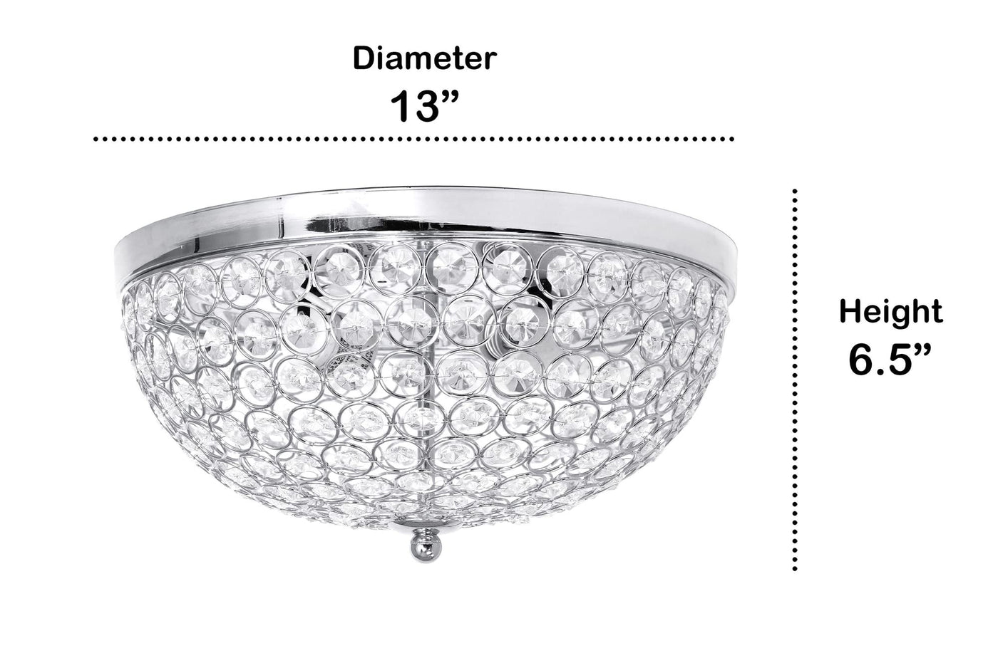 Q: What is the dimensions of the Lalia Home Crystal Glam Ceiling Flush Mount?A: The dimensions of the Lalia Home Crystal Glam Ceiling Flush Mount are thirteen inches in length, thirteen inches in width, and six and a half inches in height.