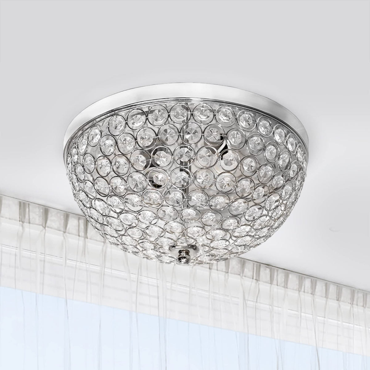 LALIA HOME Crystal Glam Ceiling Flush Mount Light, 2 Light, Chrome, Model LHM-2000-CH