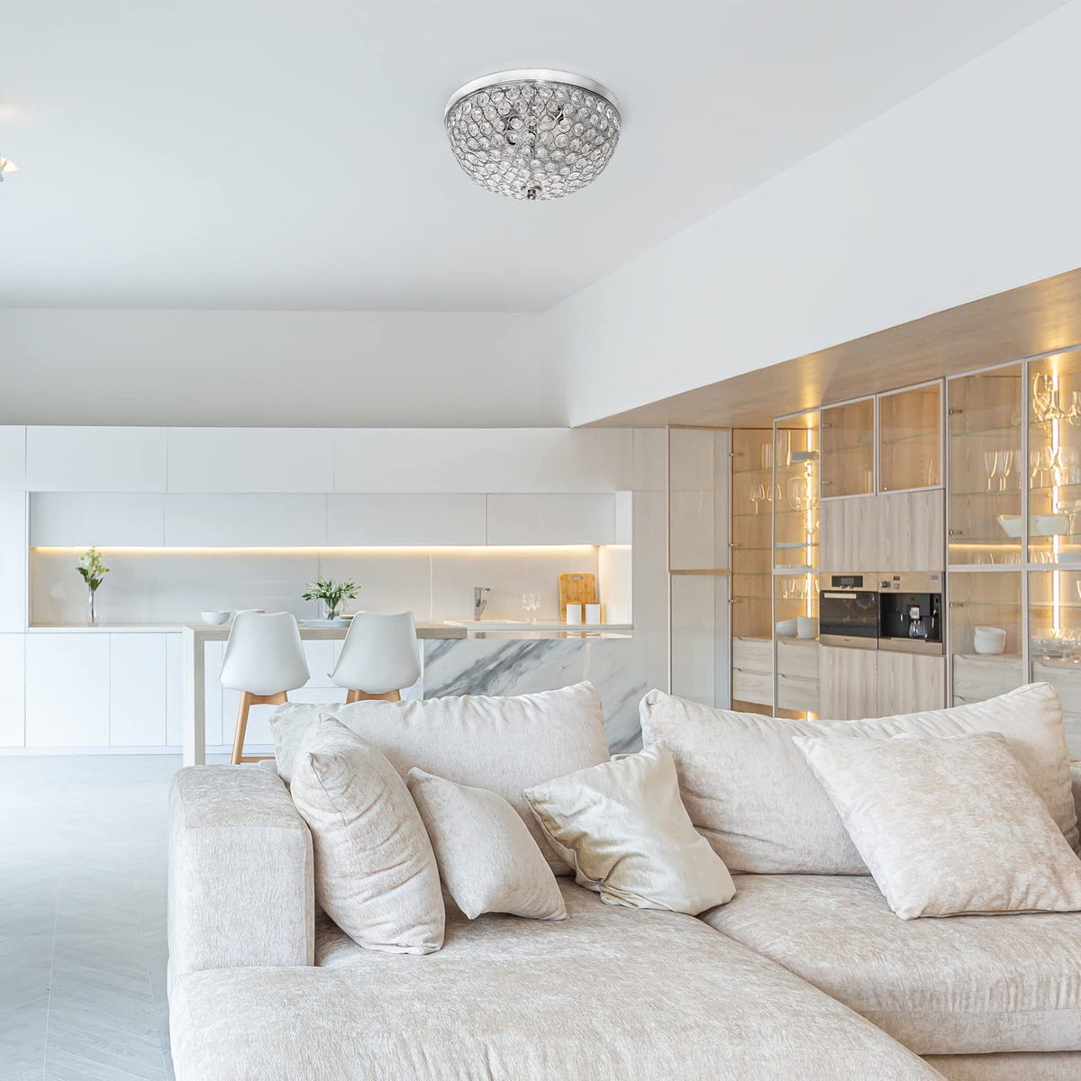 Q: Is the Lalia Home Crystal Glam Ceiling Flush Mount suitable for outdoor use?A: No, the Lalia Home Crystal Glam Ceiling Flush Mount is designed for indoor use only and is perfect for living rooms, dining rooms, bedrooms, offices, or foyers.