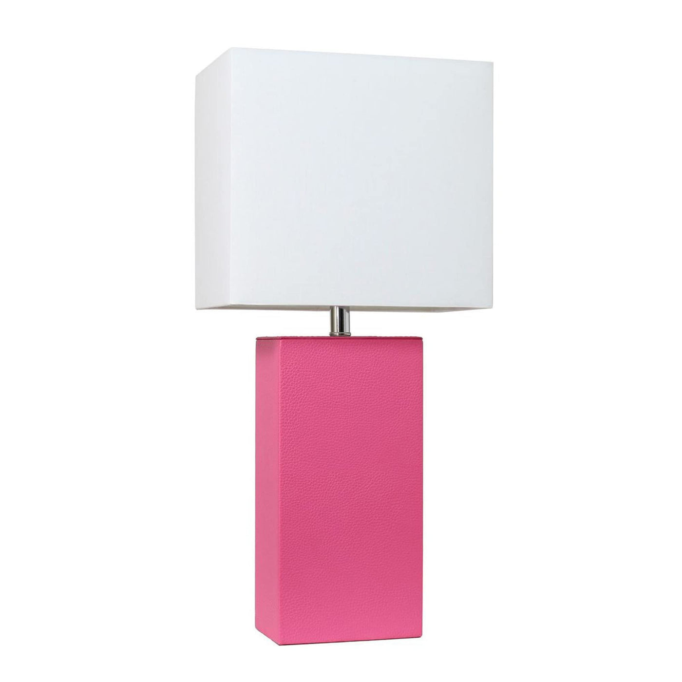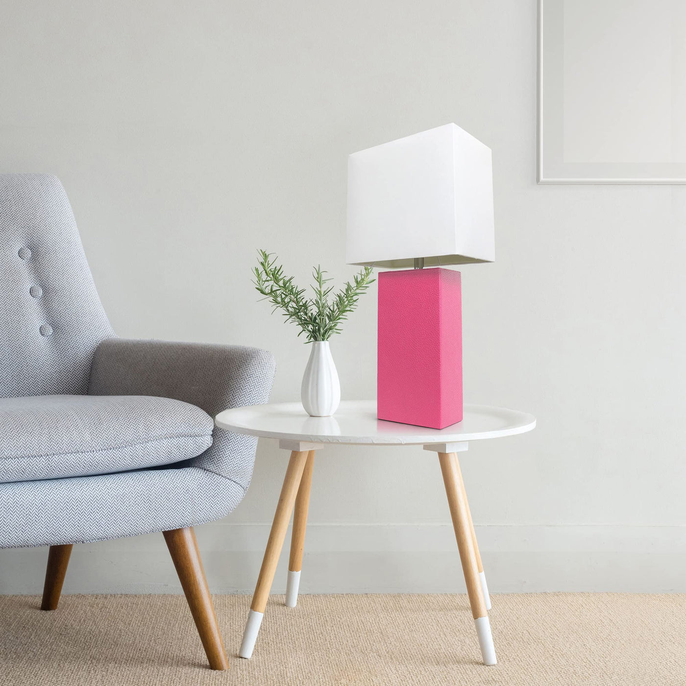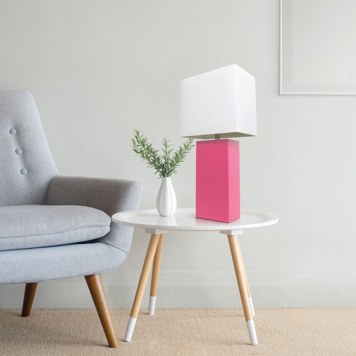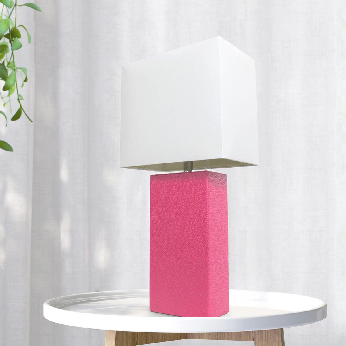 Lalia Home Hot Pink Modern Bedside Table Lamp With White Fabric Shade, 21" Leather Base