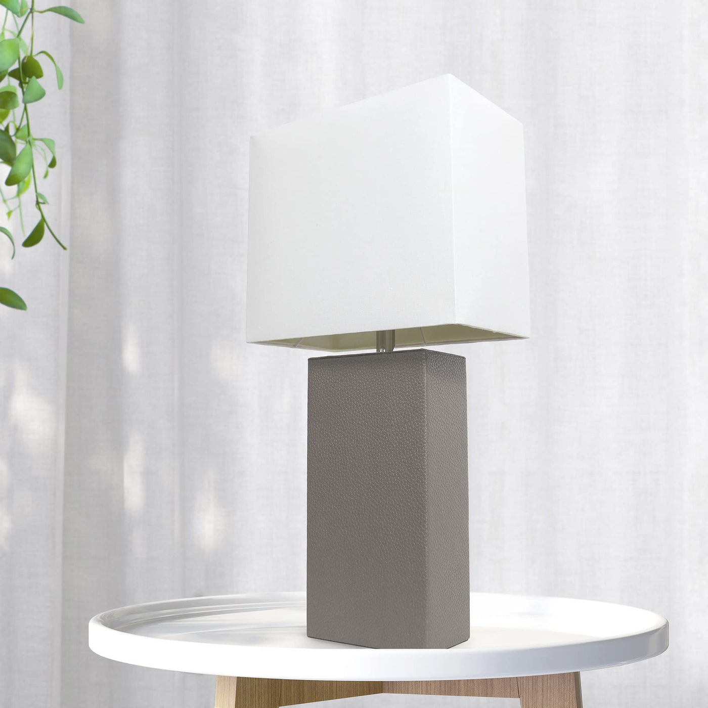 Lalia Home Lexington 21" Gray Leather Base Modern Table Lamp With White Fabric Shade