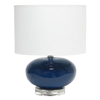 Lalia Home Modern Blue Ovaloid Glass Bedside Table Lamp With White Fabric Shade, 15.25"