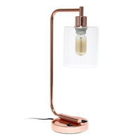 Lalia Home Modern Rose Gold Table Lamp With Usb Port, Glass Shade, 18.8" H