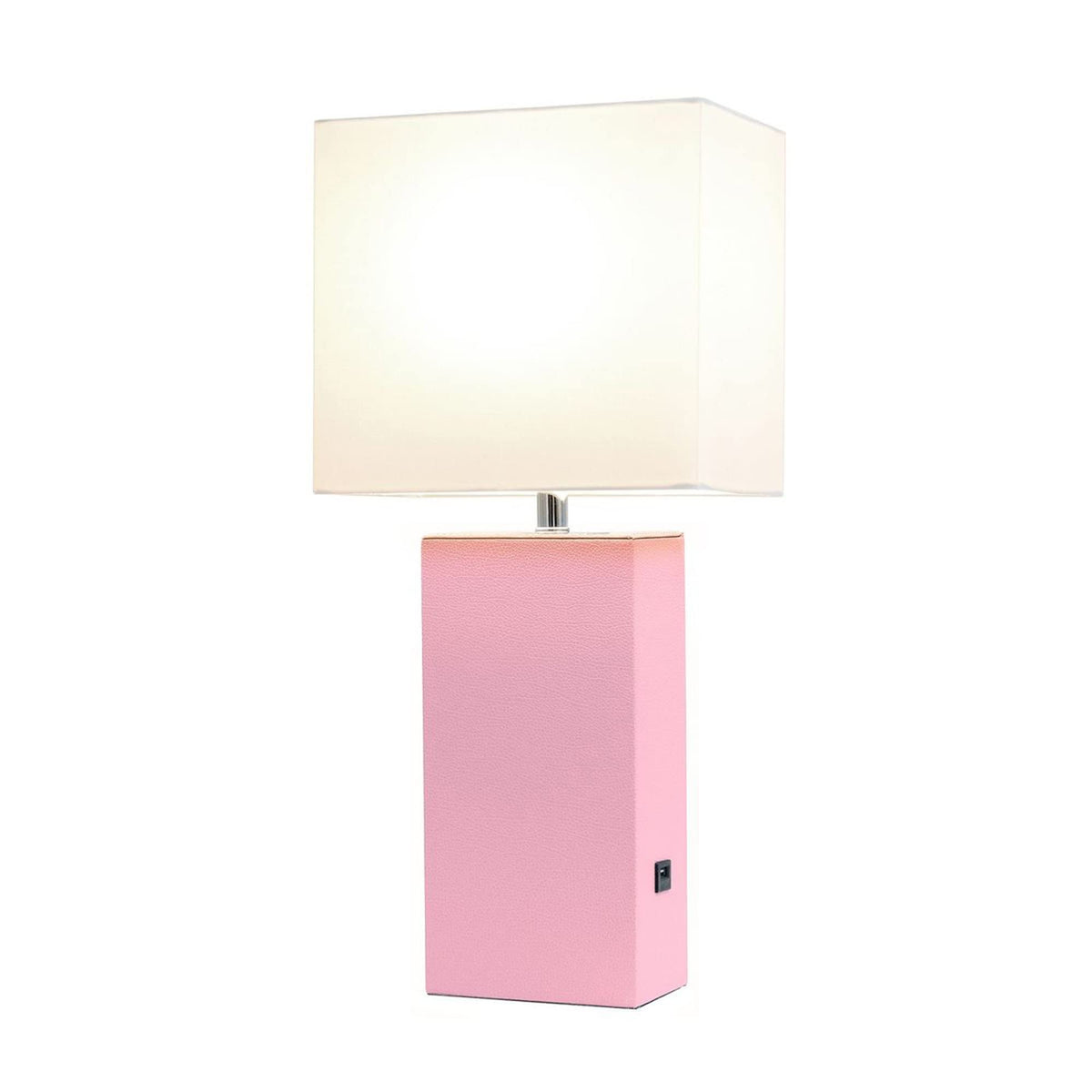 Lalia Home Pink Leather Base Bedside Table Lamp With Usb Port & White Fabric Shade