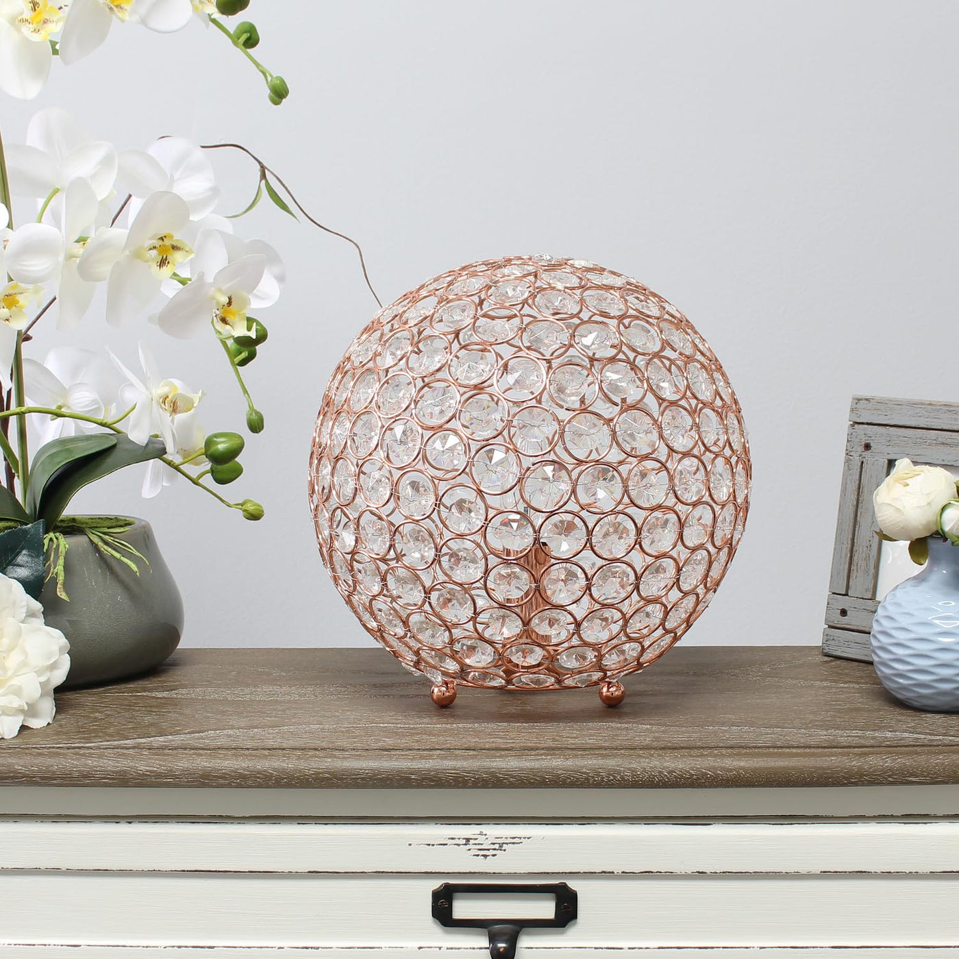 Lalia Home Rose Gold 10" Metal Crystal Table Lamp - Glamorous Round Sphere Design