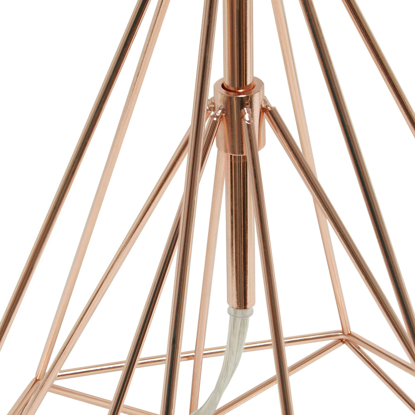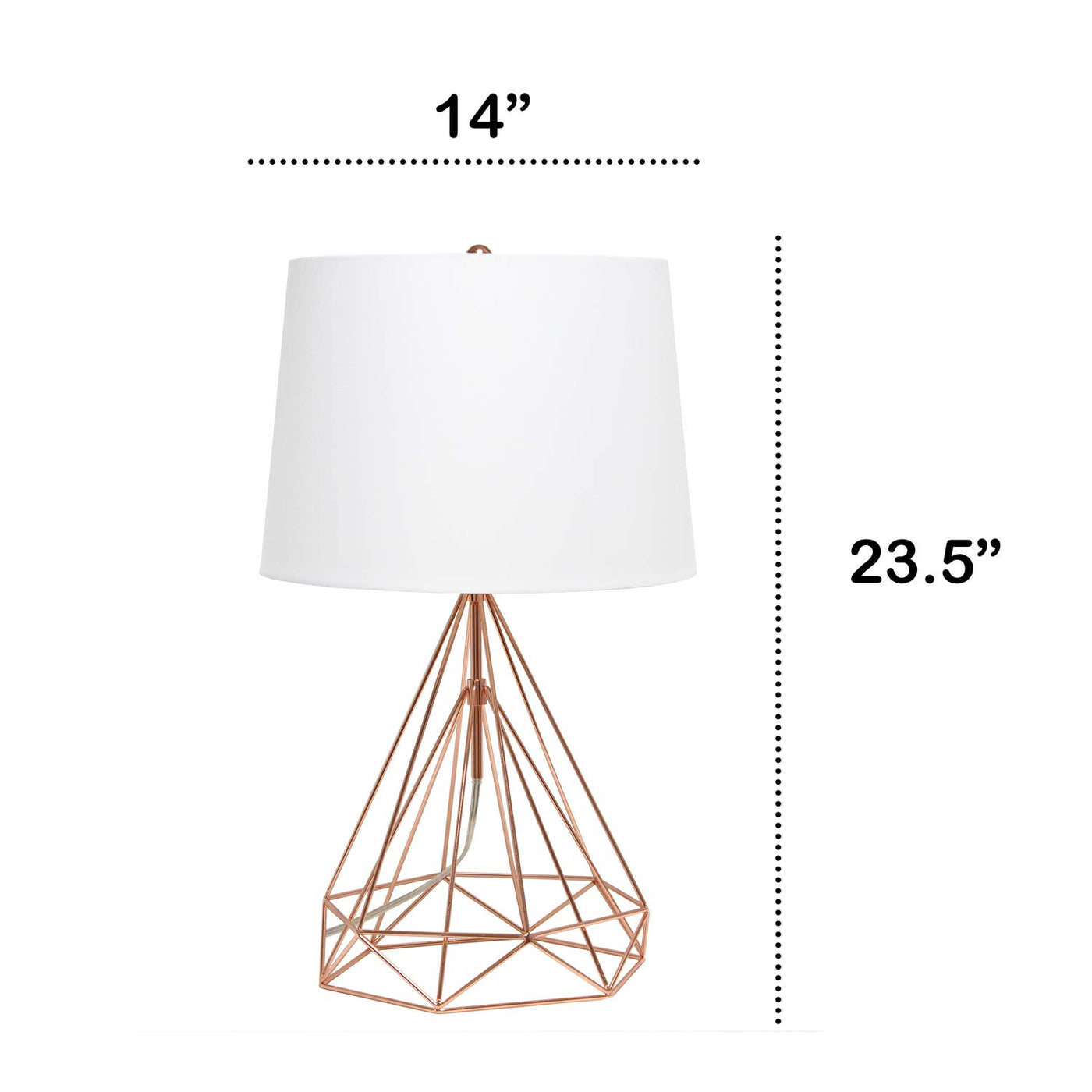 Lalia Home Rose Gold Decorative Table Lamp With White Fabric Shade, Geometric Design