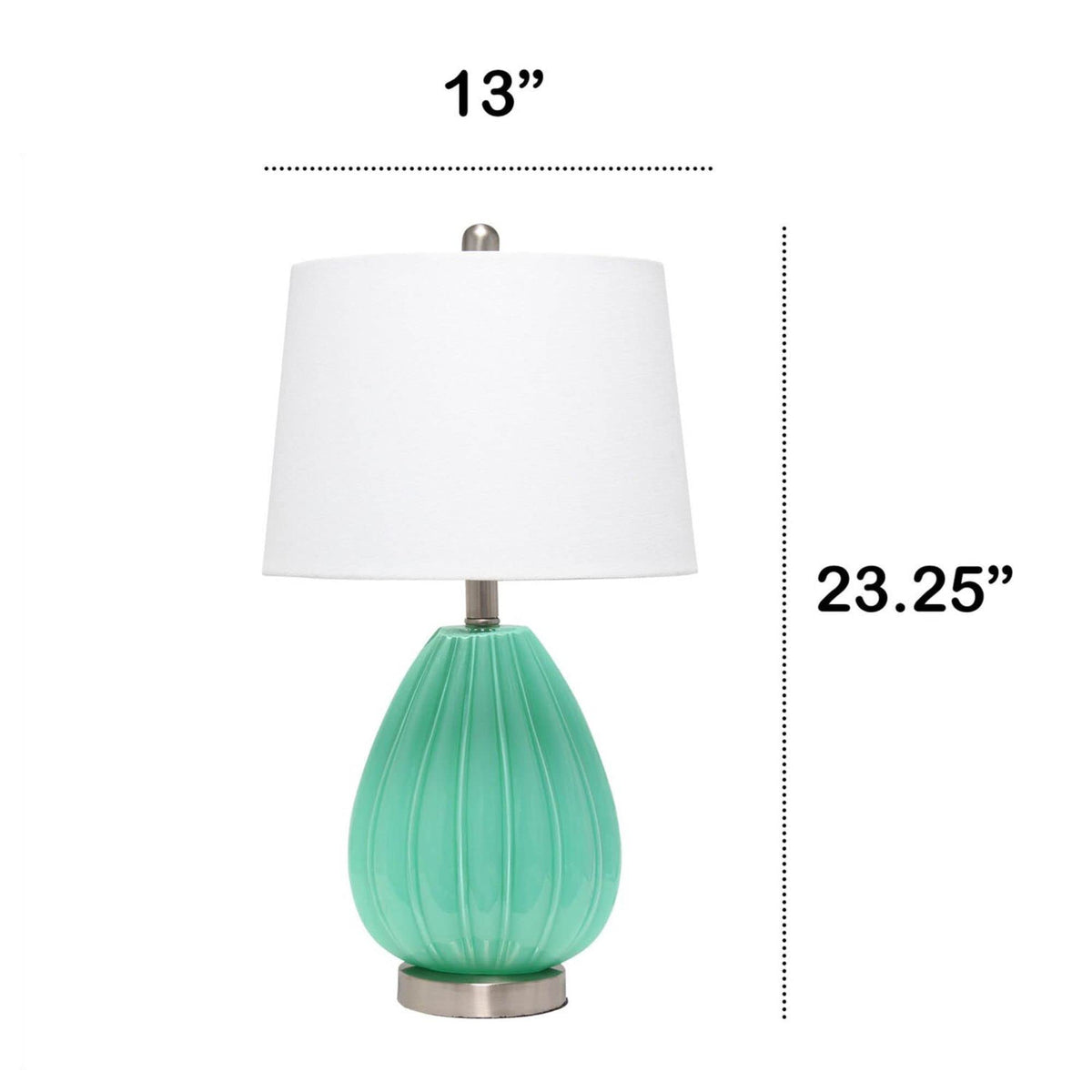 - **Stylish Design**: Features a curvy seafoam glass base with a sophisticated pleated design, complemented by a crisp white fabric shade to create a contemporary look.