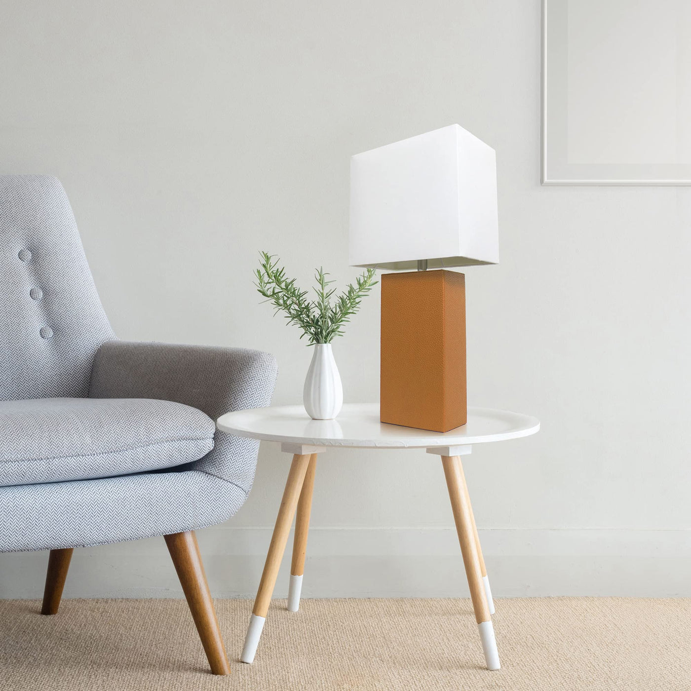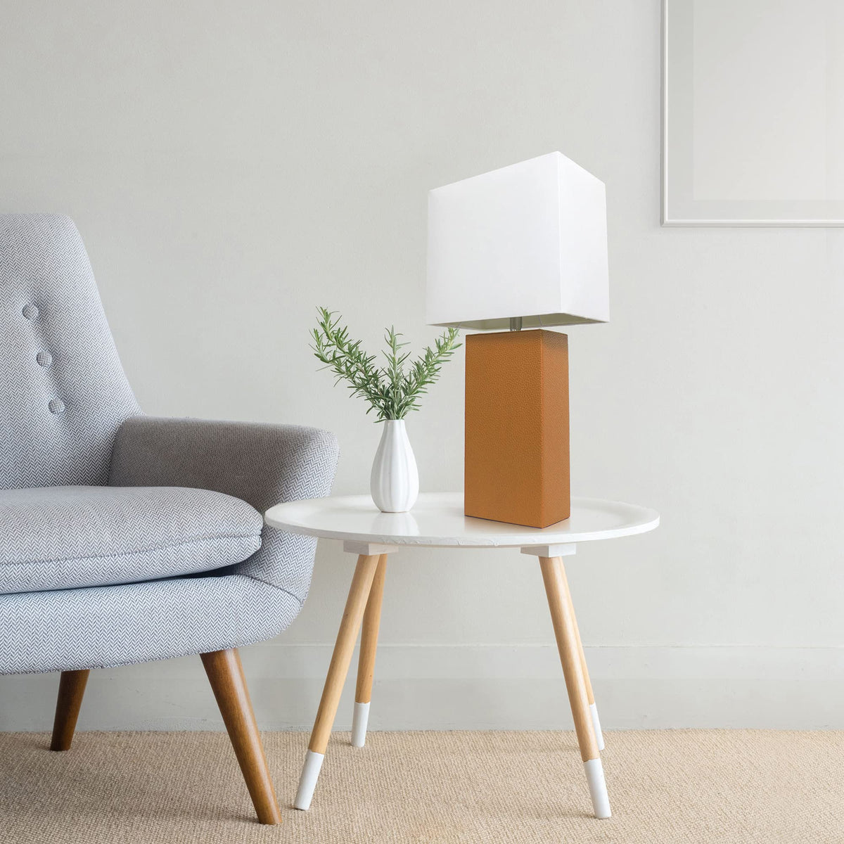 Lalia Home Tan Leather Base Modern Bedside Table Lamp With White Fabric Shade, 21"