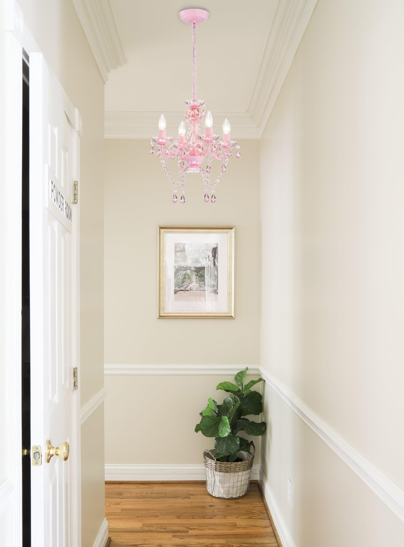 Lalula Mini Chandelier With Acrylic Crystals Pink Chandelier 4 Light Modern Chandelier For Bedroom