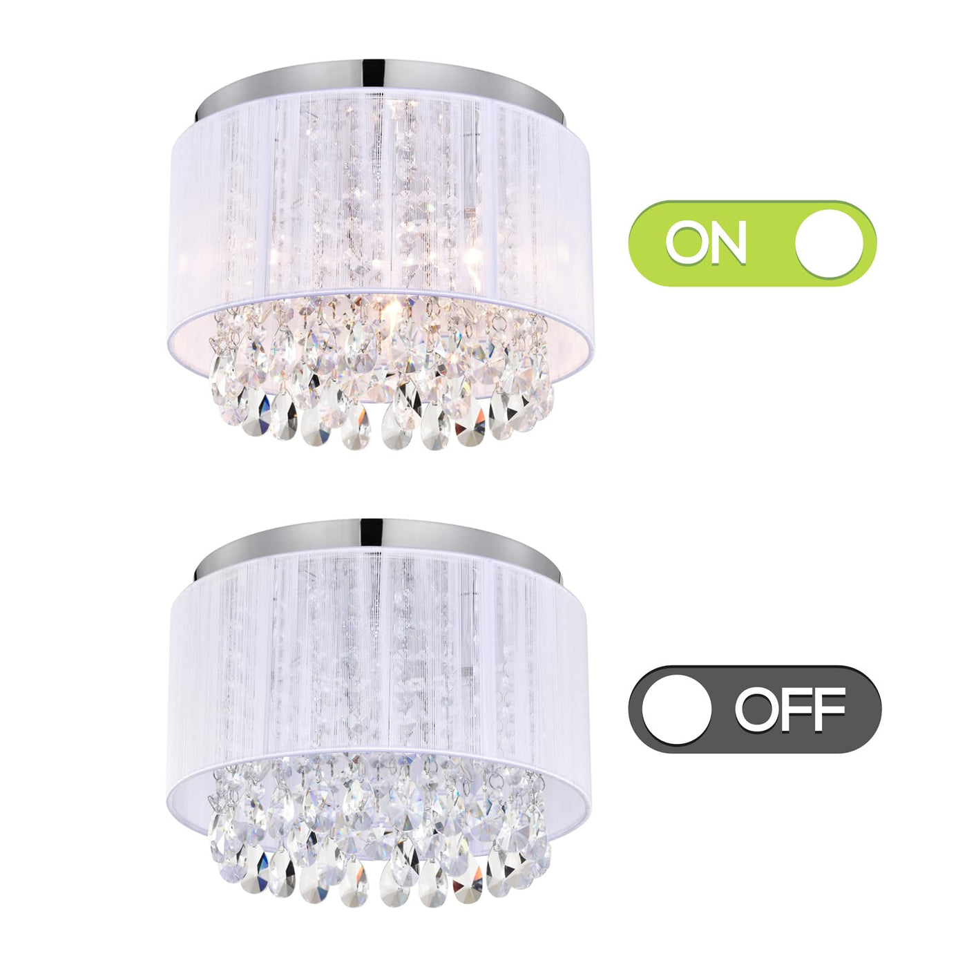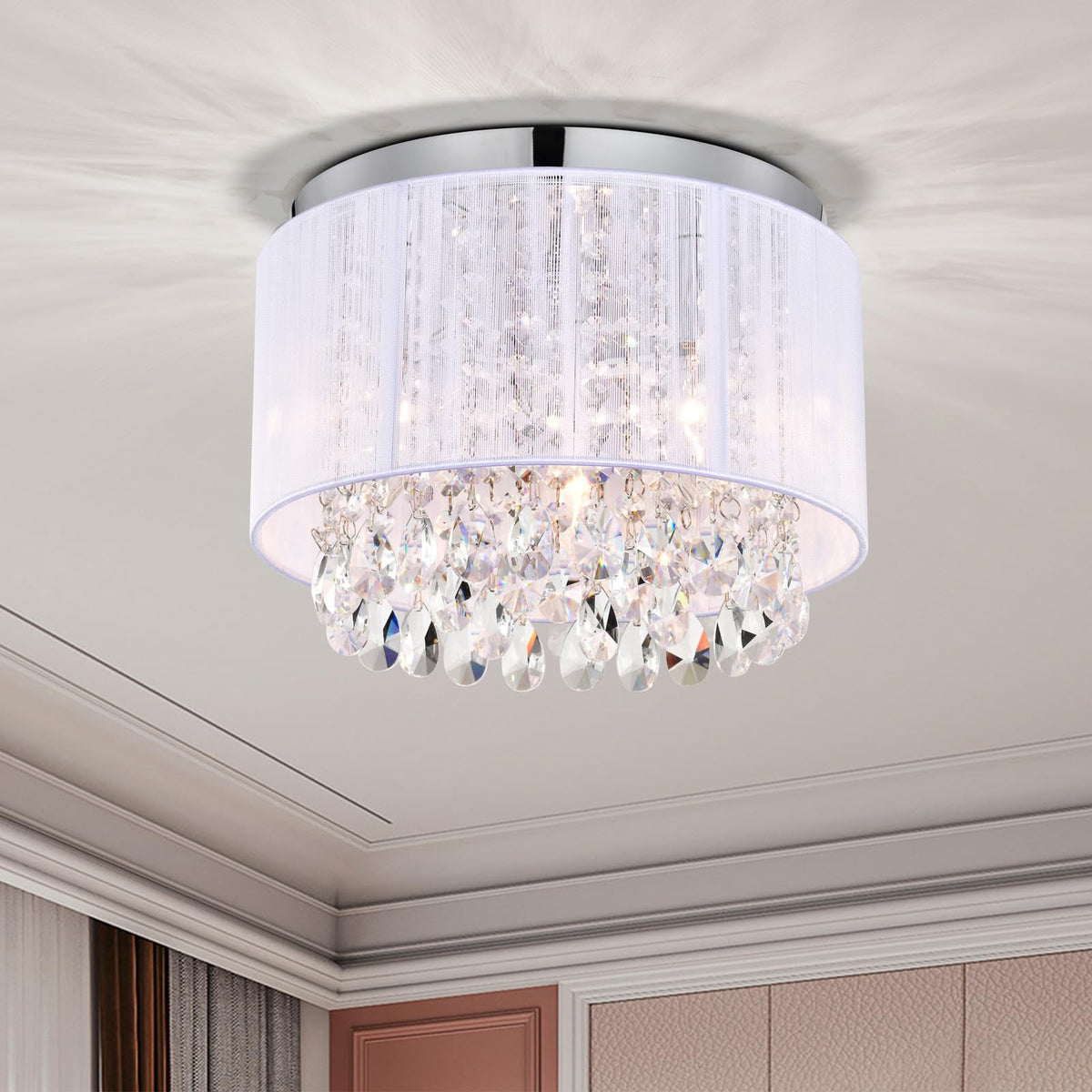 Lalula White Mini Chandelier - 11" Round Crystal Flush Mount Lighting For Bedroom