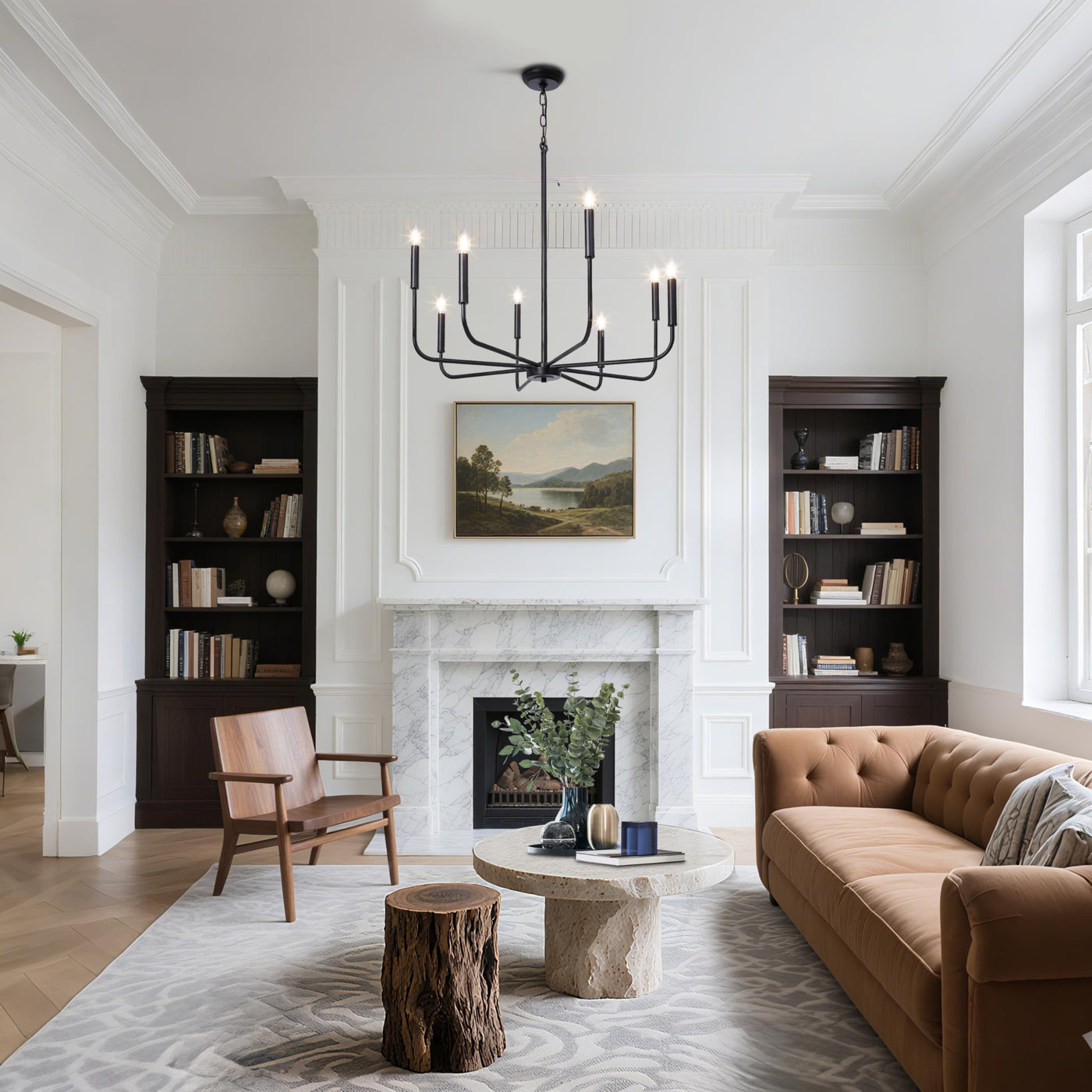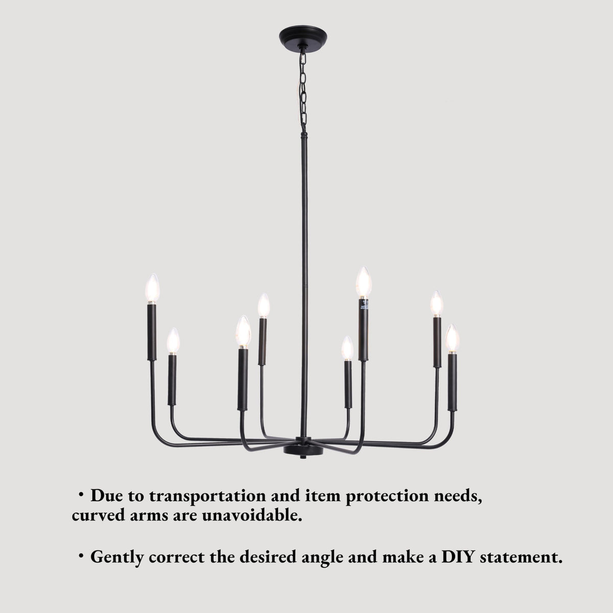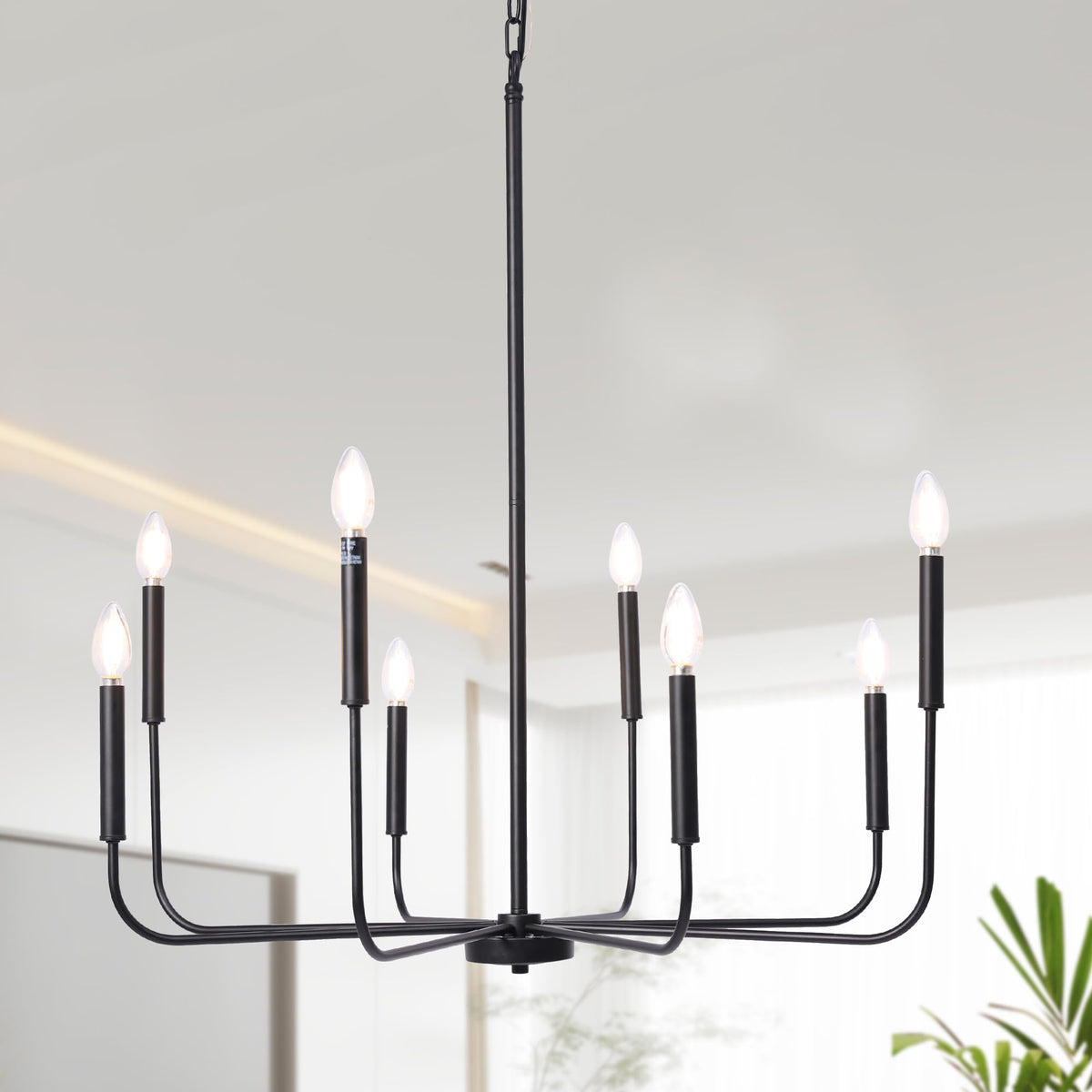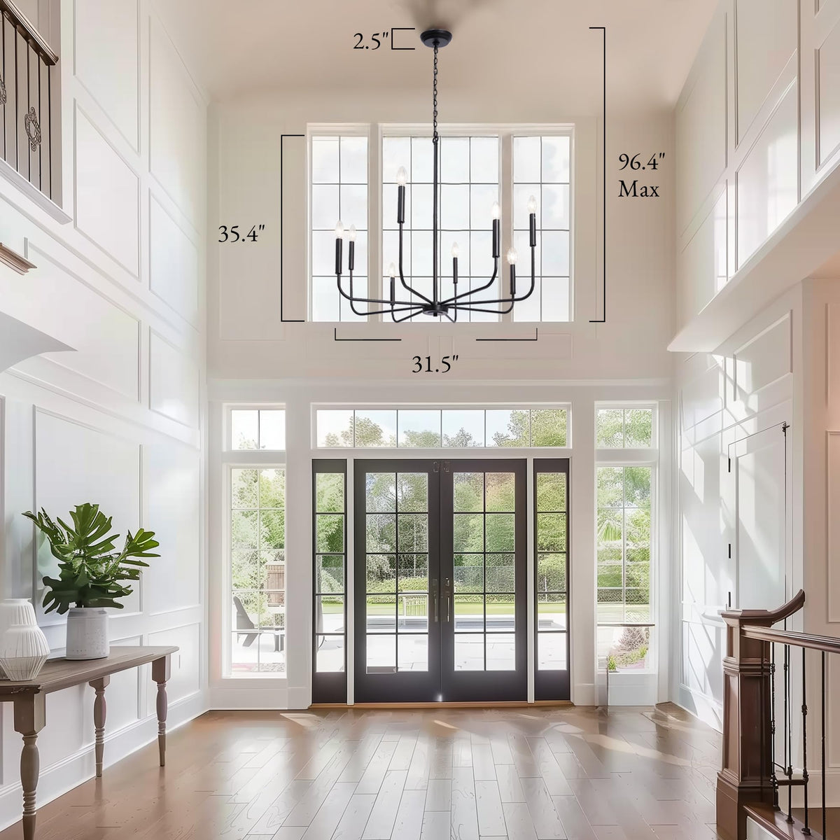 Laluz 8-Light Black Chandelier, 31.5'' Large Farmhouse Dining Room Light Fixture Over Table, Modern Chandeliers Hanging Lights F